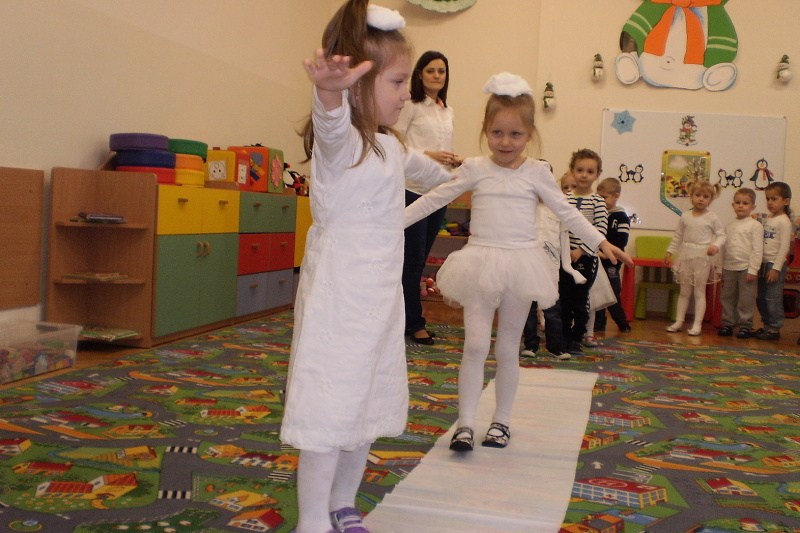 Chociaż za oknem nie widać śniegu, to jednak 7 i 8 stycznia w Akademii Edukacji Przedszkolaka zrobiło się bardzo zimowo. Stało się to za sprawą zorganizowanego w naszym przedszkolu „Białego Dnia”. Wszystkie dzieci ubrane w białe stroje z wielkim zaangażowaniem brały udział w „białych pląsach i zabawach”. Wspólnie bawiliśmy się przy dźwiękach zimowych piosenek. Dzieci uczestniczyły również w konkursach i słuchały opowiadania o bałwanku. Na zakończenie wszyscy wykonali prace plastyczne o tematyce zimowej. Był to kolejny dzień pełen radości, niesamowitych wrażeń i atmosfery pełnej życzliwości w naszej Akademii.