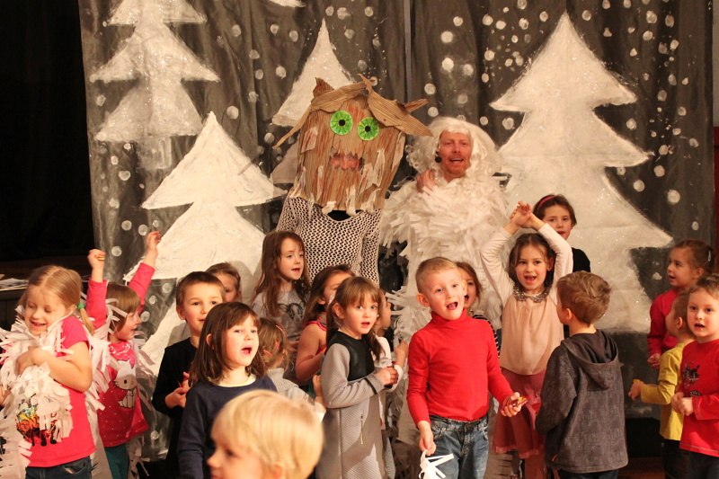 W sobotę do Pałacu Młodzieży zawitał yeti! I to nie tylko za sprawą książki pod tym właśnie tytułem. Na początku najmłodsi wraz z rodzicami i opiekunami wysłuchali opowieści o tym, jak dwóch chłopców spotkało w lesie śnieżnego stwora. Okazało się, że yeti to bardzo sympatyczne osobniki i nie trzeba się ich bać. Są wegetarianami i gotują pyszną zupę szyszkowo-jagodową! A do tego niektóre z nich świetnie rzeźbią w drewnie! Dzieci w czasie zabaw ruchowych tańczyły i naśladowały mowę yeti, ugotowały zupę szyszkową a także zrobiły własne sowy z papieru. Na zakończenie stworzyliśmy postać yeti, w którego wcielił się pan Marek. Teraz już nikt yeti się nie boi! Bo jakże to? Yecik, plecik, plums!