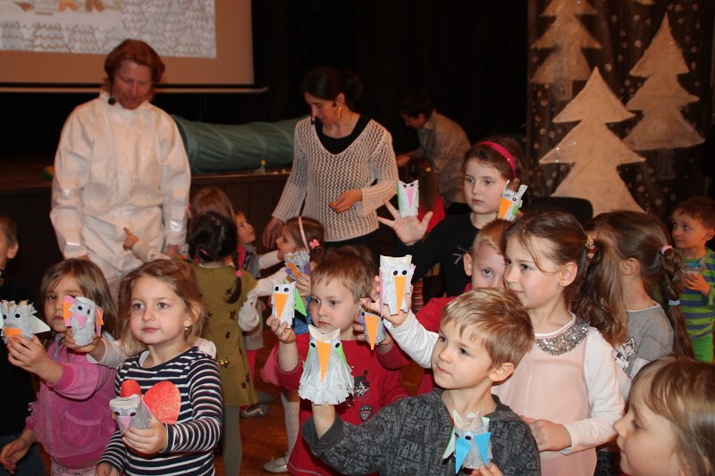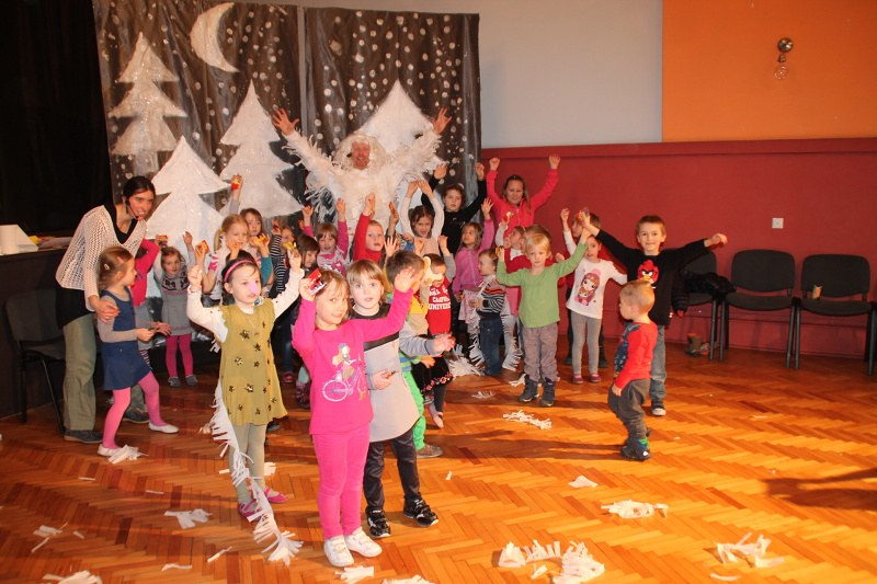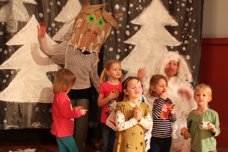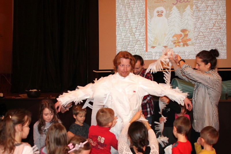 W sobotę do Pałacu Młodzieży zawitał yeti! I to nie tylko za sprawą książki pod tym właśnie tytułem. Na początku najmłodsi wraz z rodzicami i opiekunami wysłuchali opowieści o tym, jak dwóch chłopców spotkało w lesie śnieżnego stwora. Okazało się, że yeti to bardzo sympatyczne osobniki i nie trzeba się ich bać. Są wegetarianami i gotują pyszną zupę szyszkowo-jagodową! A do tego niektóre z nich świetnie rzeźbią w drewnie! Dzieci w czasie zabaw ruchowych tańczyły i naśladowały mowę yeti, ugotowały zupę szyszkową a także zrobiły własne sowy z papieru. Na zakończenie stworzyliśmy postać yeti, w którego wcielił się pan Marek. Teraz już nikt yeti się nie boi! Bo jakże to? Yecik, plecik, plums!