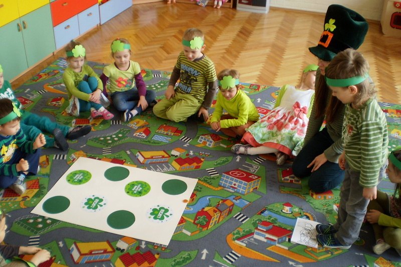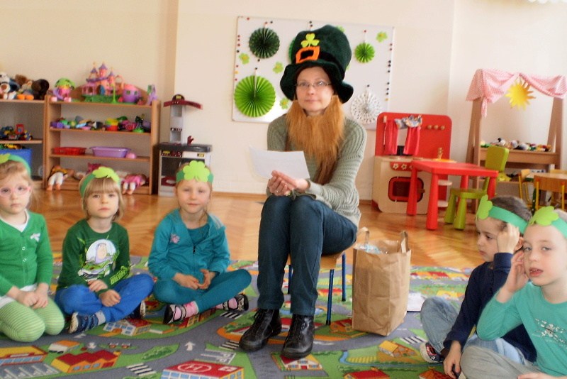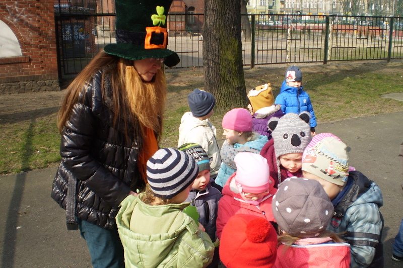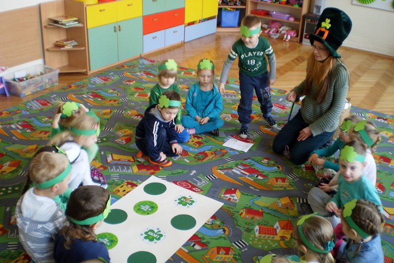 W marcu dzieci z grupy II i III pałacowej Akademii Edukacji Przedszkolaka poznały irlandzkie święto narodowe, jakim są obchody Dnia św. Patryka. Najważniejszą tradycją obchodów tego dnia jest noszenie ubrań w kolorze zielonym bo zieleń to narodowy kolor Irlandii. Były gry i zabawy tematyczne i taniec w rytm irlandzkiej muzyki. Na boisku przedszkolaki szukały szczęścia, czyli czterolistnej koniczyny, oraz złota, które zgubił Leprykon, skrzat o niewielkim wzroście.
