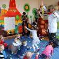 Jak sprawić by WIOSNA przybyła wreszcie do nas? Zielona, pełna kolorów i śpiewu ptaków? Czy w instrumentach mieszkają jakieś zwierzęta? Nad tym i innymi pytaniami zastanawiały się przedszkolaki podczas kolejnego spotkania z muzyką i ekologią. Profesor Ekosław Dźwiękowski z Czesiem, smoczycą Fasolą i muzycznymi pomocnikami przybyli znów do Pałacu by zabrać dzieci w świat dźwięków. Tym razem wesołej zabawie połączonej z edukacją towarzyszyły skrzypce i kontrabas. Mamy nadzieję, że dzięki tej kolorowej i radosnej atmosferze WIOSNA przypomni sobie o nas i zagości na dobre ogrzewając nas słońcem i ciesząc śpiewem ptaków!