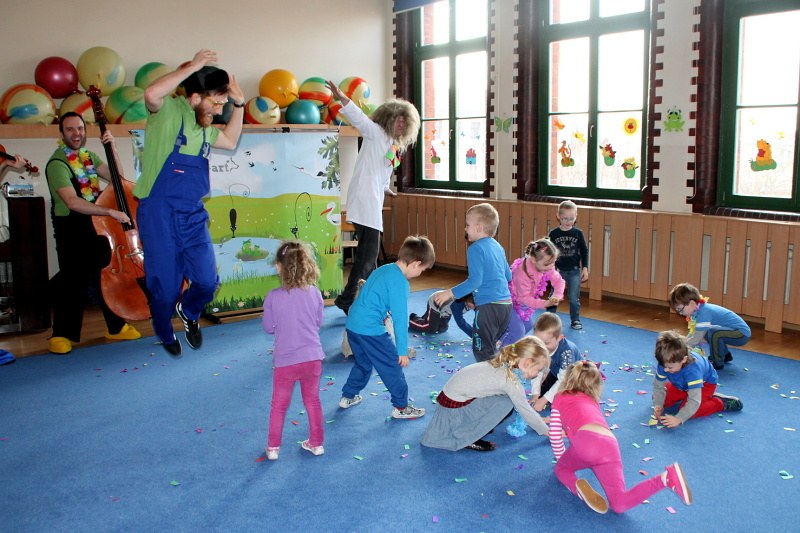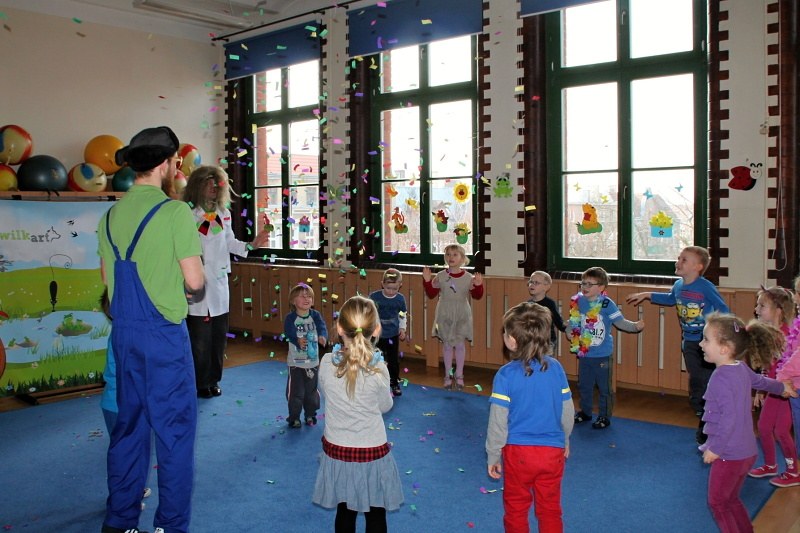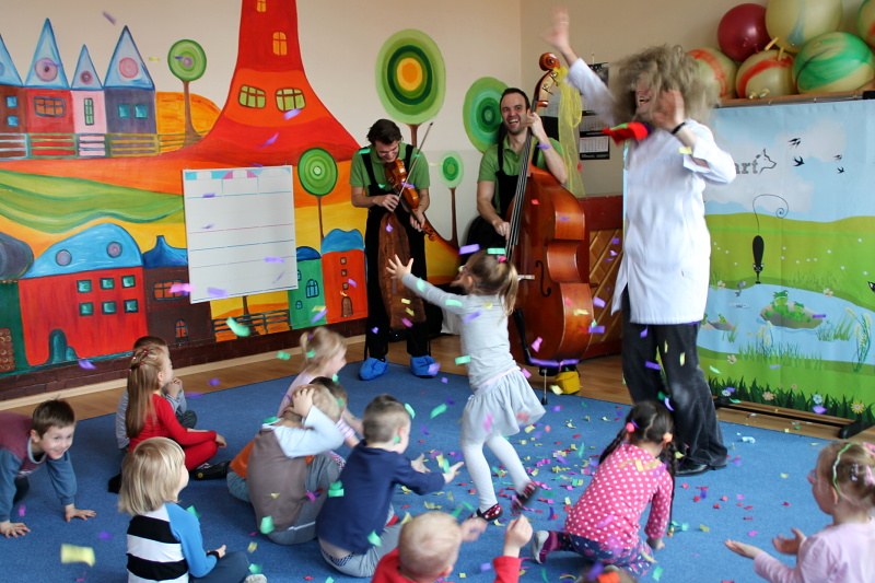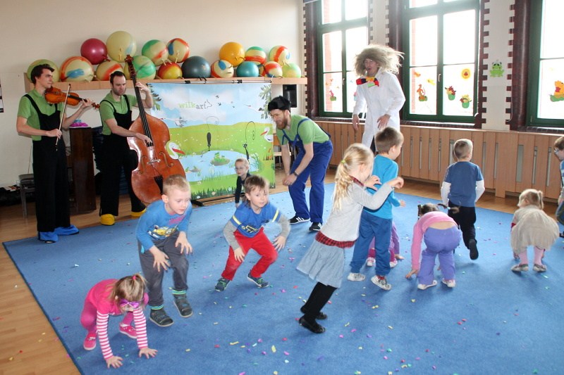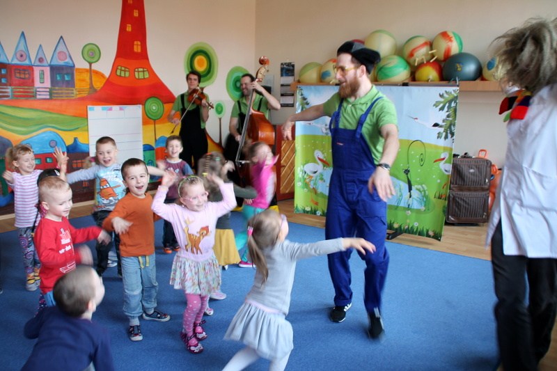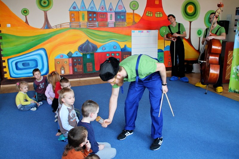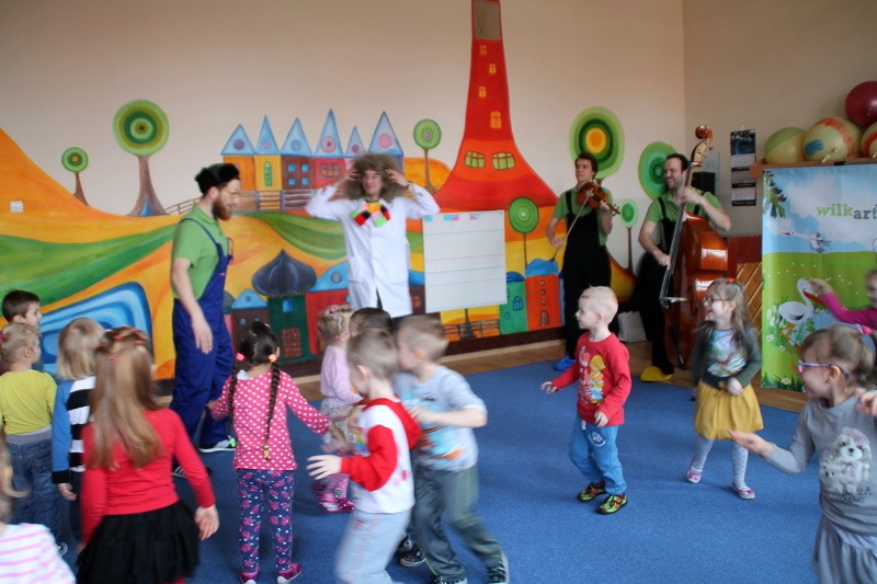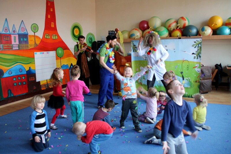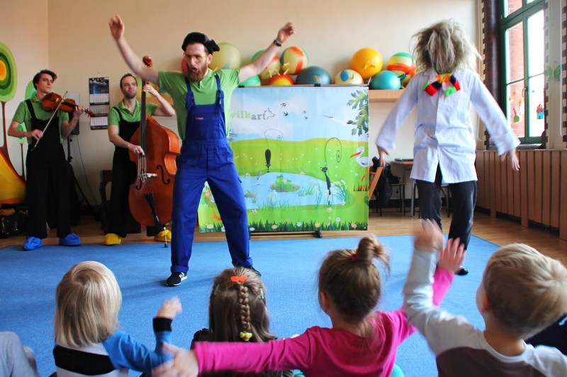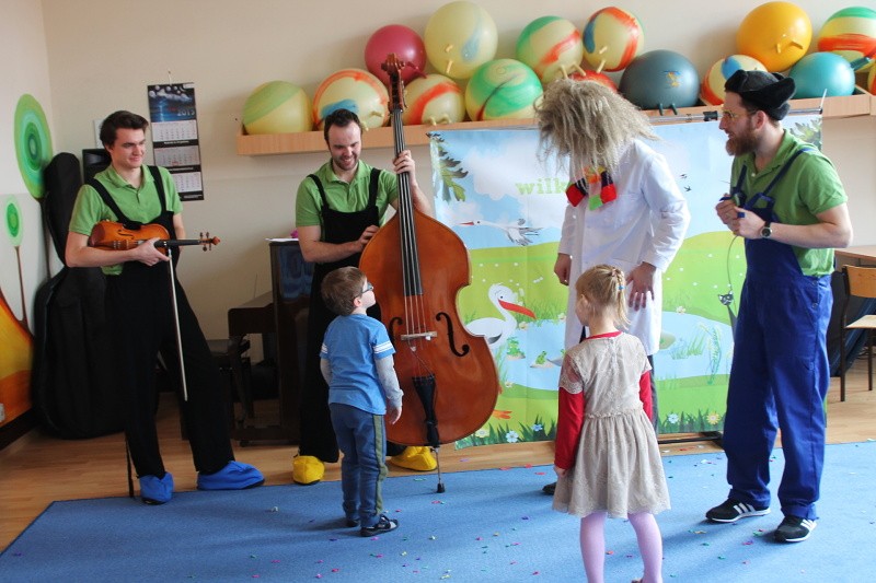 Jak sprawić by WIOSNA przybyła wreszcie do nas? Zielona, pełna kolorów i śpiewu ptaków? Czy w instrumentach mieszkają jakieś zwierzęta? Nad tym i innymi pytaniami zastanawiały się przedszkolaki podczas kolejnego spotkania z muzyką i ekologią. Profesor Ekosław Dźwiękowski z Czesiem, smoczycą Fasolą i muzycznymi pomocnikami przybyli znów do Pałacu by zabrać dzieci w świat dźwięków. Tym razem wesołej zabawie połączonej z edukacją towarzyszyły skrzypce i kontrabas. Mamy nadzieję, że dzięki tej kolorowej i radosnej atmosferze WIOSNA przypomni sobie o nas i zagości na dobre ogrzewając nas słońcem i ciesząc śpiewem ptaków!