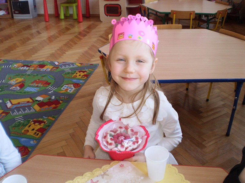 W lutym urodziny obchodziły dwie dziewczynki. W gr. II – Agatka i w gr. III – Jaśminka. Obie jubilatki otrzymały korony oraz życzenia od całej swojej grupy. Były tańce i wesołe zabawy ze śpiewem. Dla wszystkich dzieci rodzice naszych jubilatek przygotowali wspaniały, słodki poczęstunek, który ogromnie ucieszył podniebienia dzieci! Sto lat Agatko i Jaśminko!