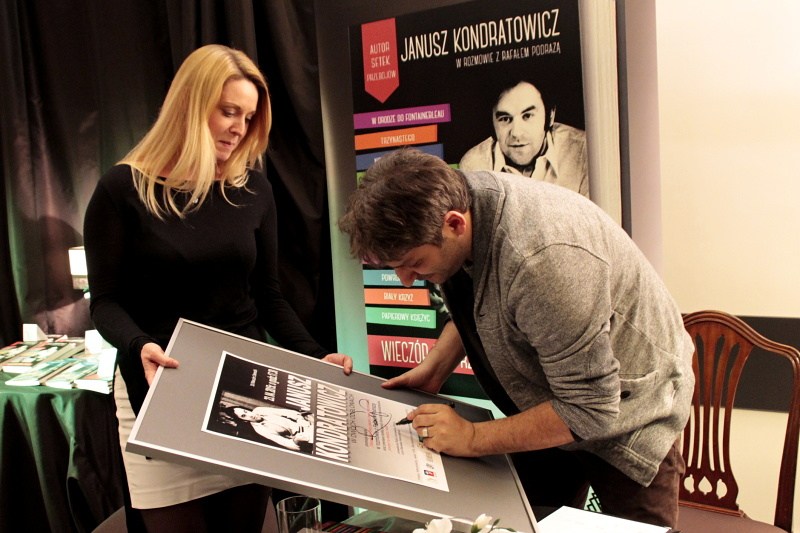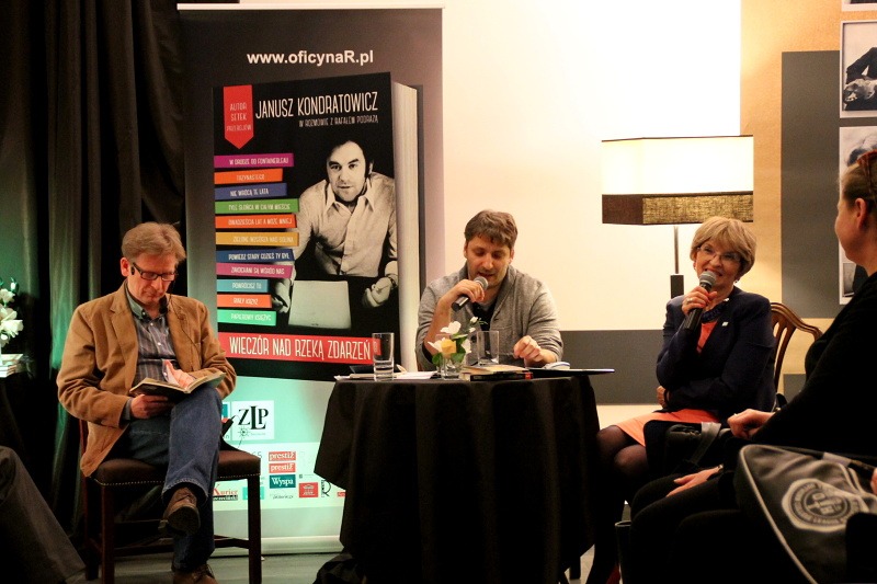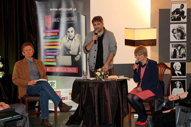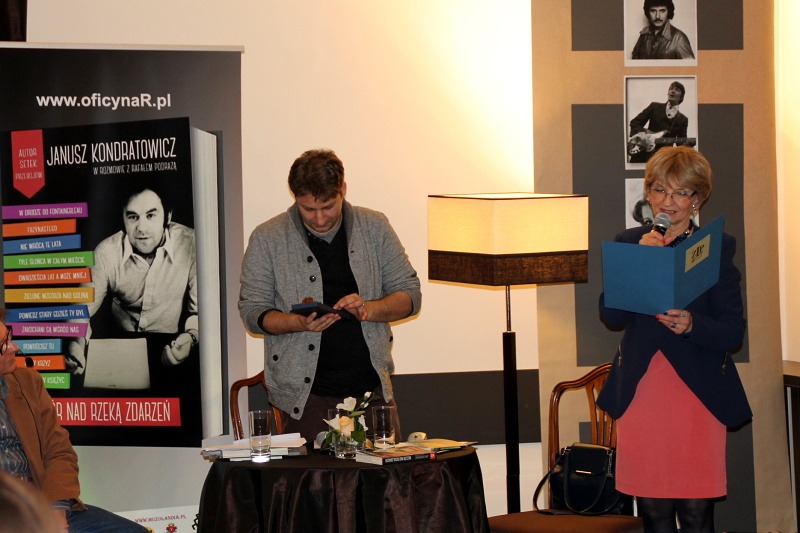Tym razem w czwartkowy wieczór prezentowano POETĘ piosenki Janusza Kondratowicza w dwóch odsłonach. Rafał Podraza promował swoją książkę „WIECZÓR NAD RZEKĄ ZDARZEŃ Janusz Kondratowicz w rozmowie z Rafałem Podrazą” a Róża Czerniawska-Karcz polecała unikatowy tom poezji Poety, 25. wydany w serii: akcent. Wydanie wyjątkowe, bo z okazji 55-lecia debiutu poetyckiego, którego Autor przebojów „Powrócisz tu” czy Tyle słońca w całym mieście” albo „Zakochani są wśród nas”, niestety, nie doczekał. Za to Związek Literatów Polskich Oddział w Szczecinie uhonorował ten niezwyczajny debiut pięknie wydanym tomikiem wierszy „Koncert na deszcz i wiatr” oraz nagrodą im. Niny Rydzewskiej RÓŻĄ POETÓW, która zostanie wręczona p. Annie Kondratowicz, żonie Poety, w Warszawie 13 maja.