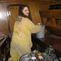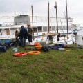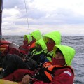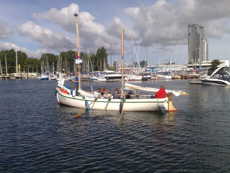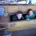Po południu przenieśliśmy się do Tawerny pod Zardzewiałą Kotwicą na Camping Marina na spotkanie poza sezonem z Kapitanem Mieczysławem Irchą. Wraz z uczestnikami zajęć SKEM z GM nr 6, prowadzonego przez Panią Poppe-Iwanów przenieśliśmy się na DZ-tę, gdzie „Prawie jak Vikingowie” żeglowaliśmy po morzu i rzece. Kapitan przybliżył zasady żeglowania na jachcie typu DZ-10, szalupie odkryto-pokładowej bez silnika. Dowiedzieliśmy się jak funkcjonować na tego typu jachcie – codzienne sztauowanie rzeczy, przygotowanie posiłków, prowadzenie nawigacji i pełnienia wacht. Poznaliśmy zasady długotrwałego wiosłowania (napęd silnikowy DZ-ty) przez wiele godzin w przypadku braku wiatru. Mimo trudów żeglugi na takim jachcie mocno zachęcał wszystkich do żeglowania na dobrze sprawującej się i pięknie manewrującej DZ-cie.
