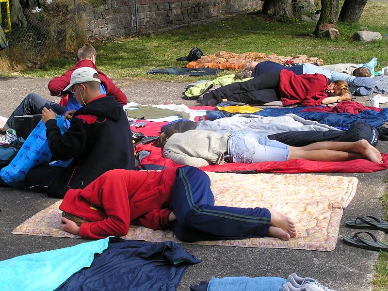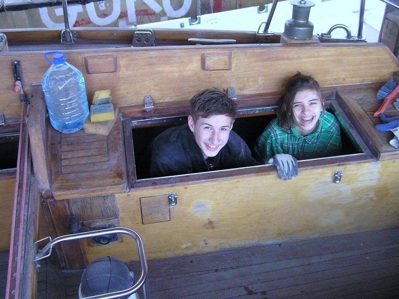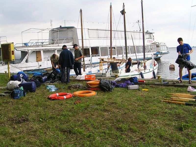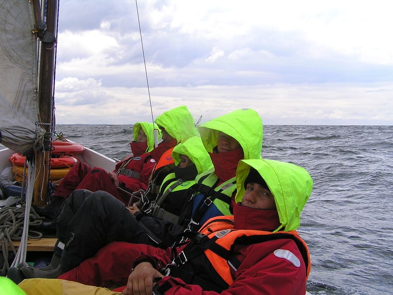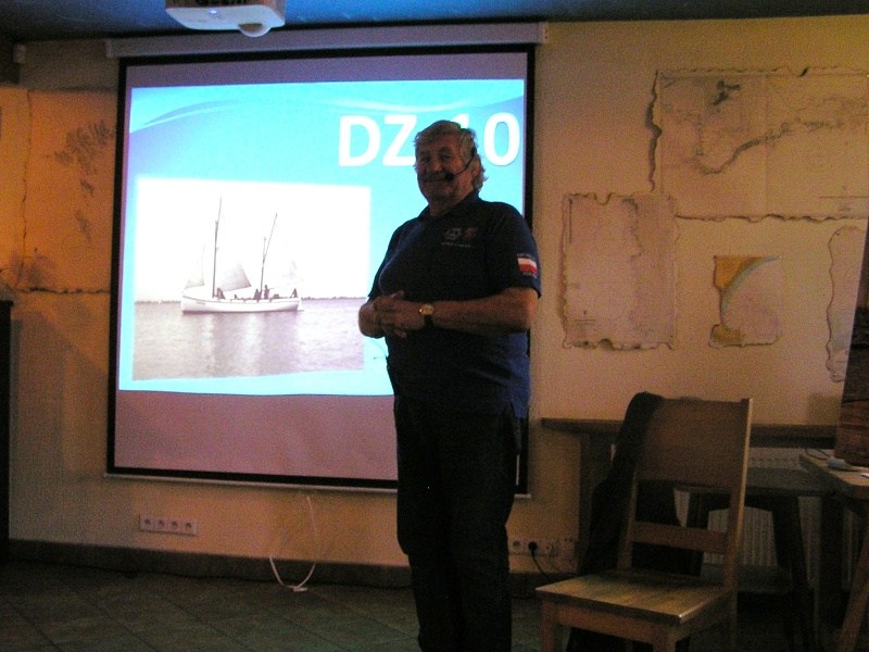 Po południu przenieśliśmy się do Tawerny pod Zardzewiałą Kotwicą na Camping Marina na spotkanie poza sezonem z Kapitanem Mieczysławem Irchą. Wraz z uczestnikami zajęć SKEM z GM nr 6, prowadzonego przez Panią Poppe-Iwanów przenieśliśmy się na DZ-tę, gdzie „Prawie jak Vikingowie” żeglowaliśmy po morzu i rzece. Kapitan przybliżył zasady żeglowania na jachcie typu DZ-10, szalupie odkryto-pokładowej bez silnika. Dowiedzieliśmy się jak funkcjonować na tego typu jachcie – codzienne sztauowanie rzeczy, przygotowanie posiłków, prowadzenie nawigacji i pełnienia wacht. Poznaliśmy zasady długotrwałego wiosłowania (napęd silnikowy DZ-ty) przez wiele godzin w przypadku braku wiatru. Mimo trudów żeglugi na takim jachcie mocno zachęcał wszystkich do żeglowania na dobrze sprawującej się i pięknie manewrującej DZ-cie.