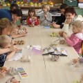 Jak co roku przed Wielkanocą, przedszkolaki z grupy II i III Akademii Edukacji Przedszkolaka zaprosiły rodziców na wspólne zajęcia plastycznej oraz z języka angielskiego. Aby podtrzymać tradycję dzieci wraz z rodzicami zdobiły jajka i tworzyły oryginalne pisanki. Samodzielnie wykonywały kurczaki – cudaki i zdobiły wielkanocne stroiki. Podczas zajęć języka angielskiego przedszkolaki poznawały słownictwo związane z Wielkanocą i brały udział w zabawach i grach tematycznych.