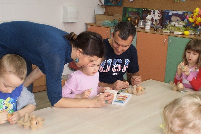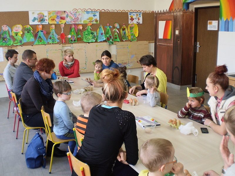 Jak co roku przed Wielkanocą, przedszkolaki z grupy II i III Akademii Edukacji Przedszkolaka zaprosiły rodziców na wspólne zajęcia plastycznej oraz z języka angielskiego. Aby podtrzymać tradycję dzieci wraz z rodzicami zdobiły jajka i tworzyły oryginalne pisanki. Samodzielnie wykonywały kurczaki – cudaki i zdobiły wielkanocne stroiki. Podczas zajęć języka angielskiego przedszkolaki poznawały słownictwo związane z Wielkanocą i brały udział w zabawach i grach tematycznych.