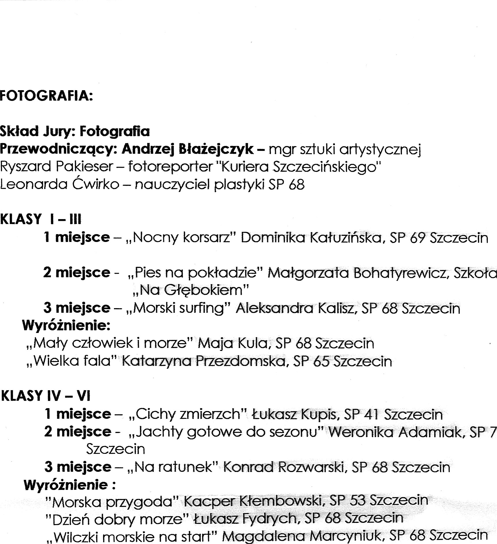 Jury Konkursu miało duży problem z wyłonieniem zwycięzców w obu kategoriach, gdyż nadesłano wiele doskonałych wierszy i fotografii. W wyniku wielogodzinnej pracy wyłoniono zwycięzców. Ogłoszenie wyników przeplatane było występami „Młodych Wilczków Morskich” z SP nr 68.