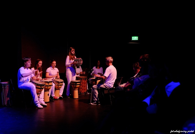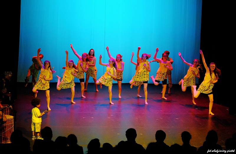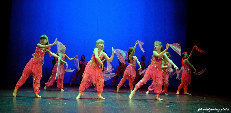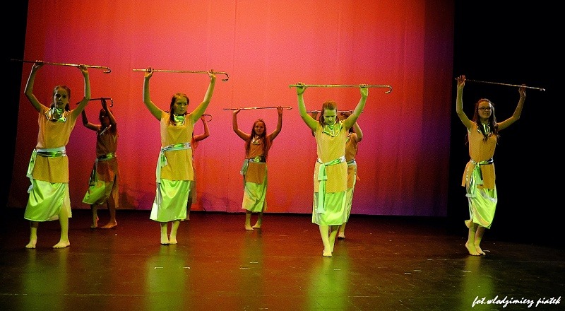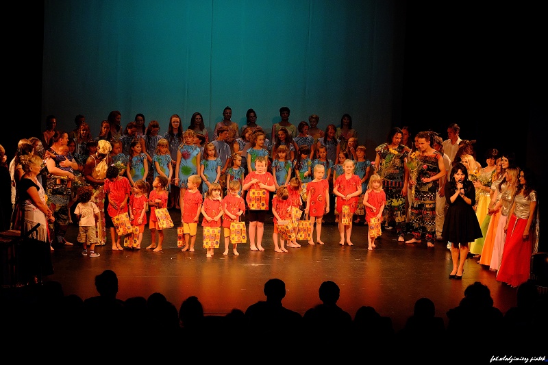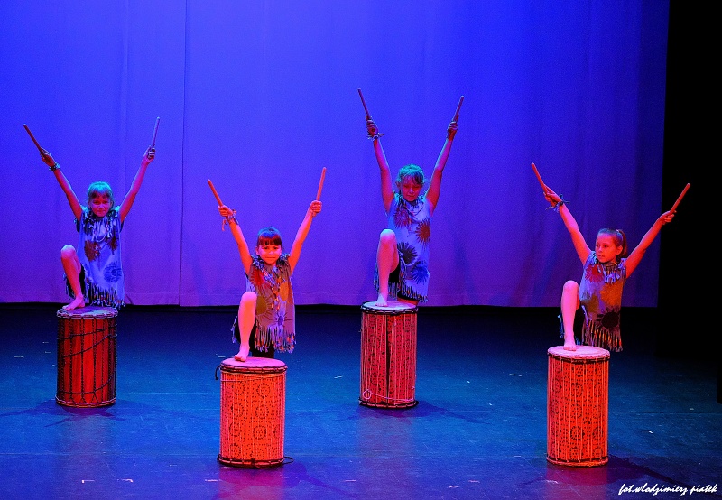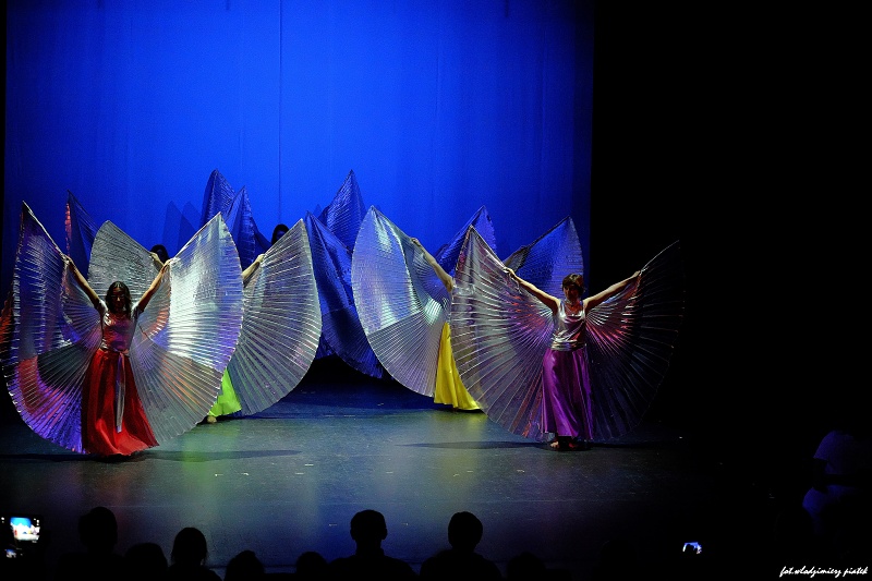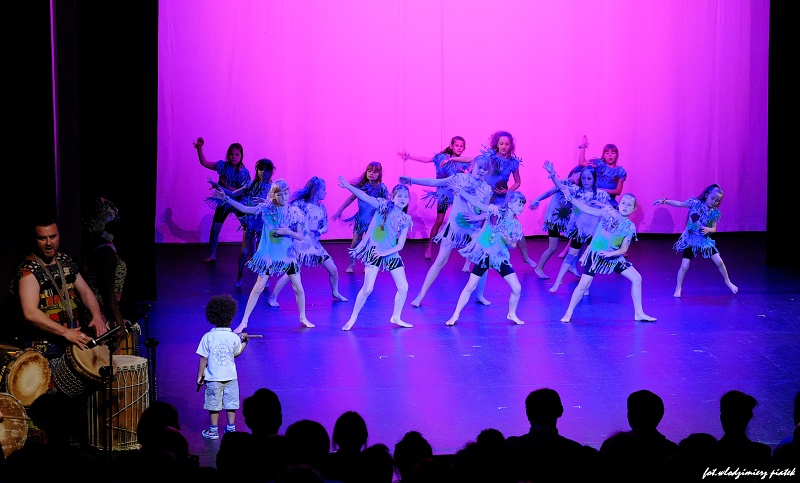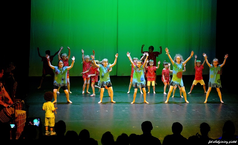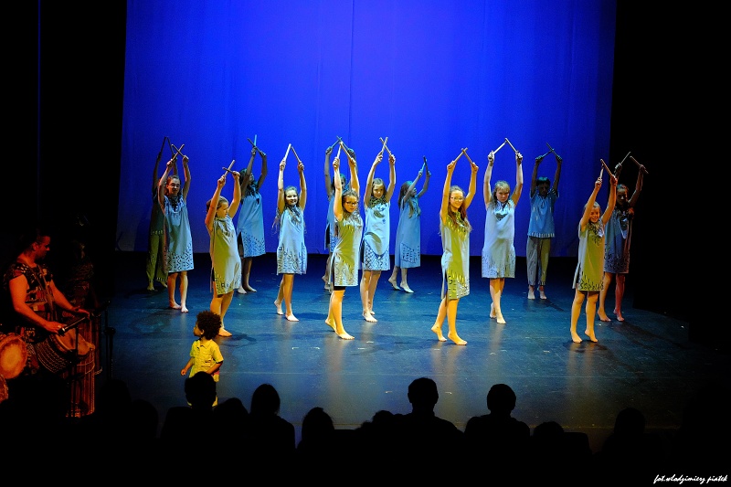 „TANIEC ETNICZNY ŁĄCZY POKOLENIA Z TAŃCEM ETNICZNYM POZNAJEMY ŚWIAT” taki tytuł nosiło widowisko muzyczno – taneczne przygotowane przez p.Justynę Kozłowską na zakończenie roku szkolnego 2014/2015. Na scenie wystąpiły między innymi dzieci i młodzież z Pracowni Tańca Etnicznego Pałacu Młodzieży: grupa ,,Etnika „,,Mała Etna” i Etna, a akompaniował zespół „Djembe” pod kierunkiem p.Ryszarda Dziubaka oraz zespół ,,Afrique Sogue” pod kierunkiem p.Leszka WIszniewskiego. Były subtelne i malownicze tańce orientalne z kolorowymi rekwizytami, hiszpańskie Flamenco, a także żywiołowe i energetyczne tańce afrykańskie. Nie zabrakło także rdzennych, tradycyjnych pieśni afrykańskich w wykonaniu gwinejskiej wokalistki M’mharry Sylla Wiszniewskiej. Za sprawą tańca, muzyki, barwnych rekwizytów i kostiumów przenosiliśmy się do różnych miejsc na świecie czując prawdziwy powiew zbliżających się wakacji.