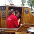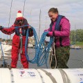 25 maja o godzinie 10.00 wszyscy spotkaliśmy się w Centrum Żeglarskim przy jachcie „Zryw”, który wyciągnięty z wody stał na saniach. Czy będzie gotowy do żeglugi? Dziewczyny wraz z P. Jolą wybrały się na zakupy, a chłopcy sprawdzali stan techniczny jachtu. Po wszystkim poszliśmy na obiad, a po powrocie jacht kołysał się na wodzie pod suwnicą. Odetchnęliśmy z ulgą. Zryw gotowy do drogi. Po zaznajomieniu się z zasadami bezpieczeństwa i stanowiskami manewrowymi, po dopasowaniu pasów bezpieczeństwa, wieczorem udaliśmy się na ognisko integracyjne z załogą „Daru Szczecina”. Następnego dnia, po ostatnich przygotowaniach i kiedy żegnaliśmy się, pojawiły się media. Wywiady przed kamerami i mikrofonami.