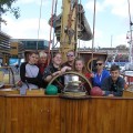 Nasz kolega Arek Łukiński został gwiazdą mediów i zyskał liczne grono przede wszystkim fanek w ogólnopolskiej TV i radiu. Przy salutach bandery i życzeniami szczęśliwej podróży z S/y Urtica popłynęliśmy do Świnoujścia, po drodze tankując paliwo w Trzebieży. Następnego dnia wyszliśmy w morze. Wysoka do 2,5 m fala zrobiła swoje. Choroba morska zmogła 5 z 8 osób załogi. Płynąc przez całą dobę wzdłuż brzegu dotarliśmy do przystani w Darłowie, gdzie poszliśmy na Rynek Główny i zakupiliśmy kilka pamiątek. Tego samego dnia wieczorem na zaproszenie kapitana „Dar Szczecina” oglądaliśmy krótki film o wielkich regatach The Tall Ships Races 2013. Następnego dnia w południe wyruszyliśmy na ostatni etap naszej wyprawy do Gdyni. Po trudnej nocy, kiedy na wachcie wytrwał tylko kapitan, Albert i Pani Jola dotarliśmy do celu. Po śniadaniu poszliśmy zwiedzać miasto. Odwiedziliśmy żaglowiec legendę „Dar Pomorza” i zrobiliśmy kilka pamiątkowych fotek. Niestety, nasza wyprawa dobiega końca. Zdobyliśmy nowa doświadczenia i nauczyliśmy się wielu przydatnych rzeczy. To była wyjątkowa przygoda i na pewno jej nie zapomnimy.