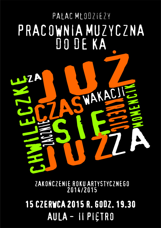 „Już za chwileczkę już za momencik, czas wakacji zacznie się kręcić” . Pod takim hasłem uczestnicy wszystkich grup pracowni, zaprezentowali się na scenie pałacowej z programem podsumowującym ich dokonania artystyczne w roku szkolnym 2014/2015.