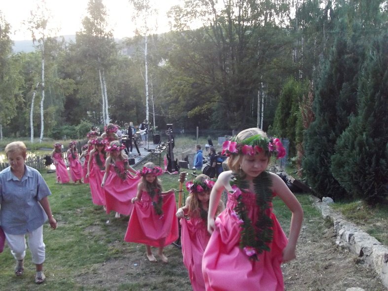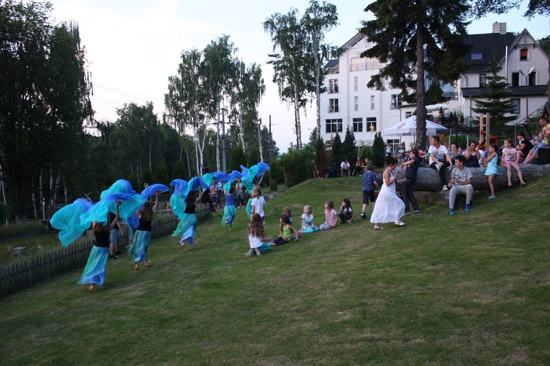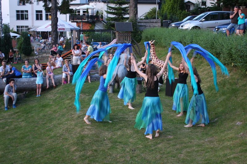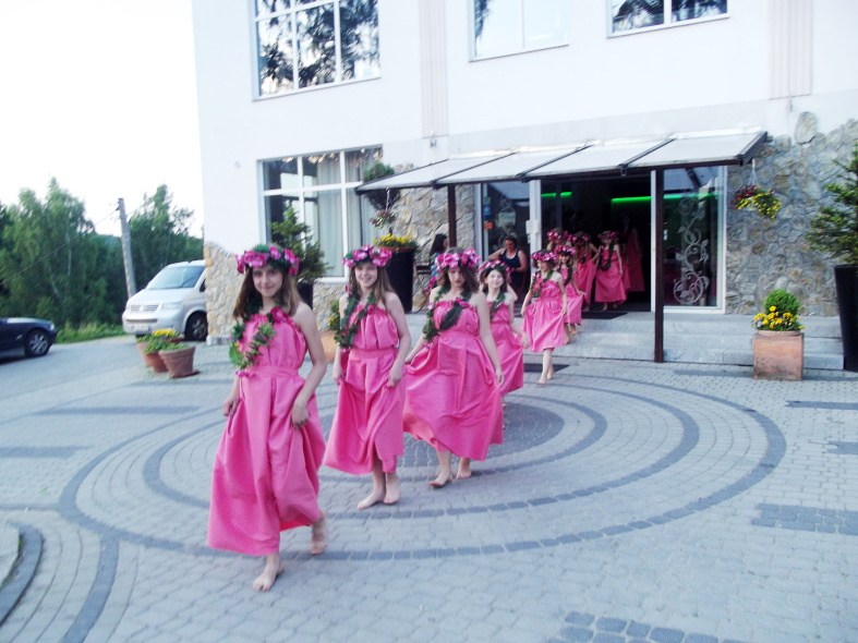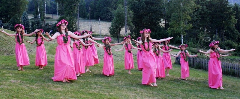 Dziewczęta z Pracowni Tańca Etnicznego – grupa Mała Etna i Etna pod kierunkiem p.Justyny Kozłowskiej podczas warsztatów w Szklarskiej Porębie tańczyły różne tańce etniczne. Ćwiczyły pełne energii rytmy afrykańskie przygotowując się do tańca z bębnami afrykańskimi dun dun. Poznały kolejną choreografię orientalną z wachlarzowoalami tym razem imitującymi wodę, a także niezwykle urokliwy taniec hawajski Hula. Przygotowały wianki, hawajskie lei, a także suknie. Na koniec warsztatów wzięły udział w pałacowym pokazie w Hotelu ,,Orla Skała”. Piękny, otaczający polanę krajobraz stał się dla wszystkich wykonawców najwspanialszą scenografią.