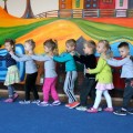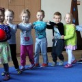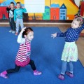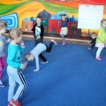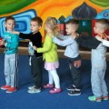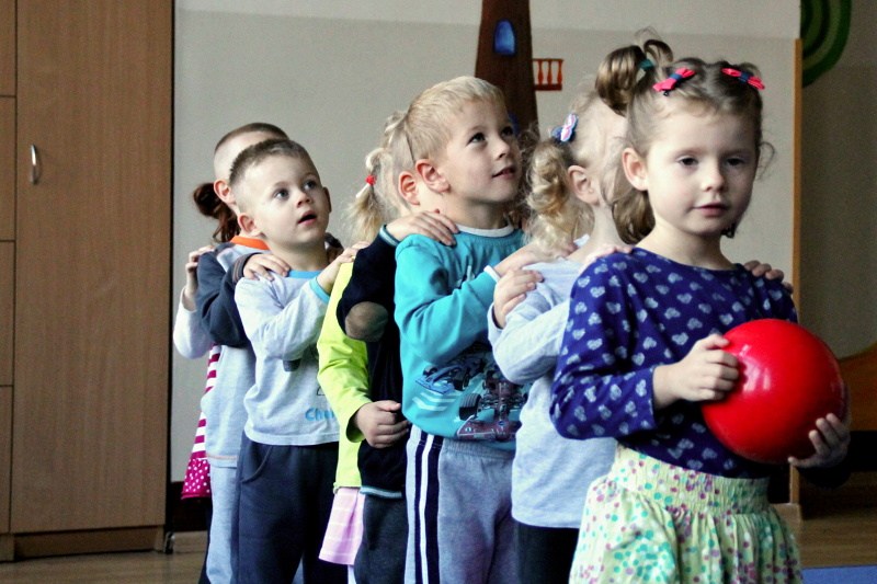 Kangurki, czyli pałacowe przedszkolaki z grupy II, prawie każdy dzień zaczynają rytmicznie. Podczas piątkowych zajęć w rytm muzyki uciekały przed groźnym Gargamelem, tańczyły i jeździły wesołym pociągiem. Taki początek dnia daje dobrą energię na kolejne godziny spędzone w Akademii Edukacji Przedszkolaka.
