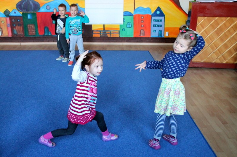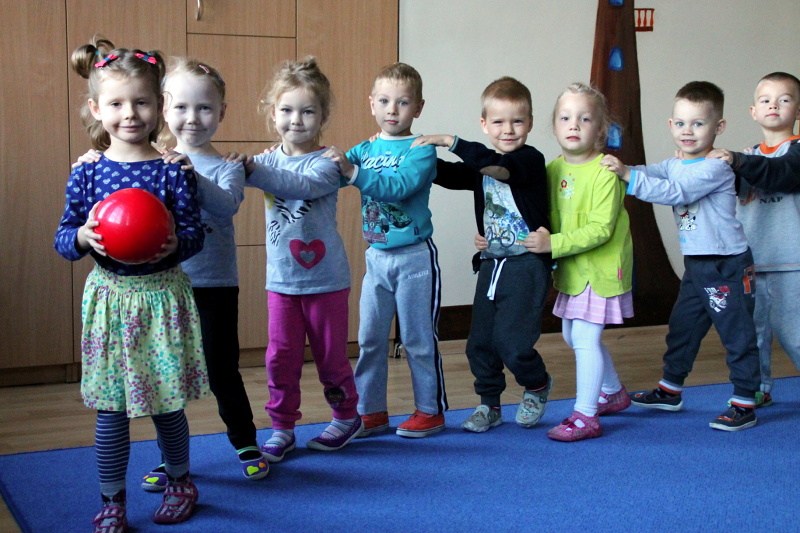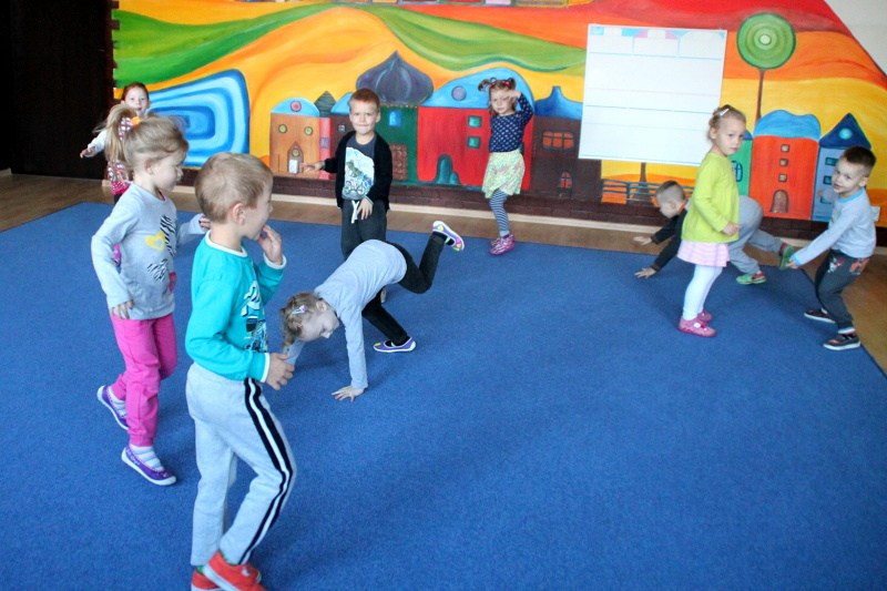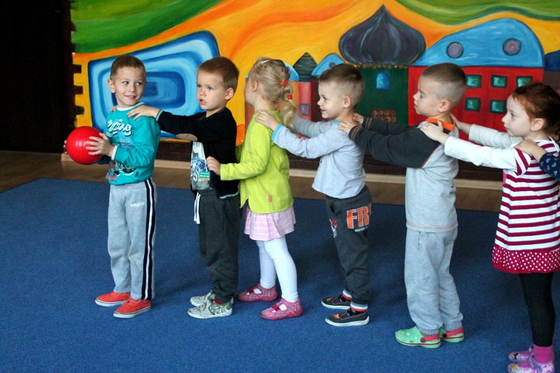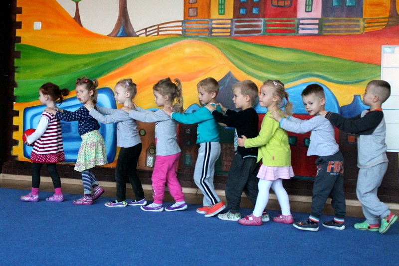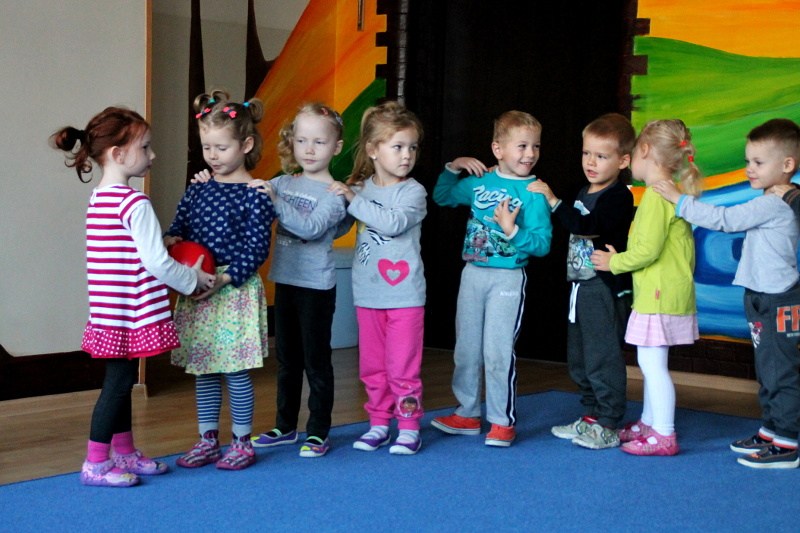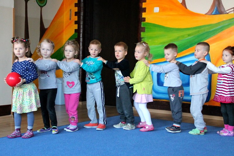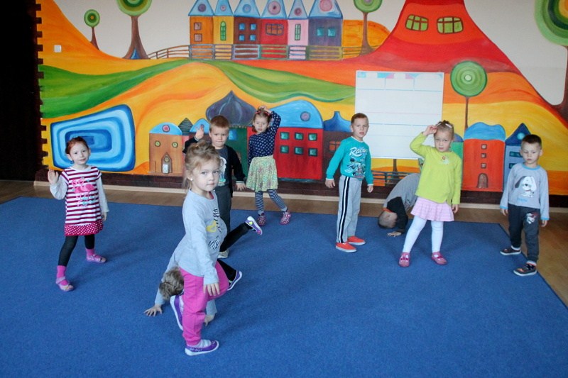 Kangurki, czyli pałacowe przedszkolaki z grupy II, prawie każdy dzień zaczynają rytmicznie. Podczas piątkowych zajęć w rytm muzyki uciekały przed groźnym Gargamelem, tańczyły i jeździły wesołym pociągiem. Taki początek dnia daje dobrą energię na kolejne godziny spędzone w Akademii Edukacji Przedszkolaka.
