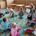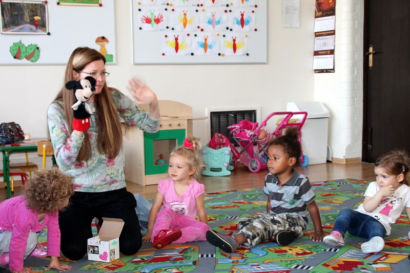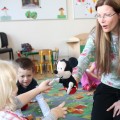 W czwartek grupa I, czyli Motylki spotkały się ze swoją znajomą Myszką Miki, która pomagała dzieciom zapamiętać nowe wyrazy. Teraz maluchy już wiedzą, że np. BLUE oznacza kolor niebieski, a HEAD to głowa.