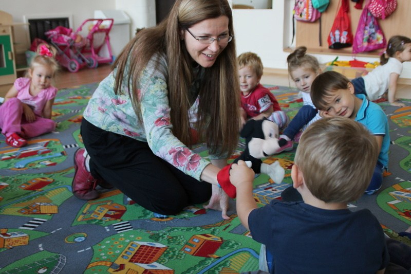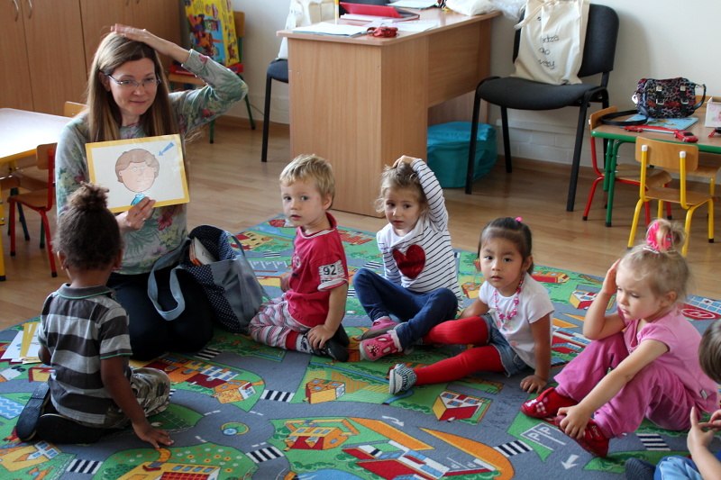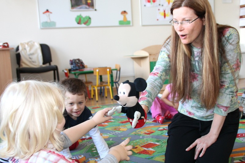 W czwartek grupa I, czyli Motylki spotkały się ze swoją znajomą Myszką Miki, która pomagała dzieciom zapamiętać nowe wyrazy. Teraz maluchy już wiedzą, że np. BLUE oznacza kolor niebieski, a HEAD to głowa.