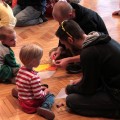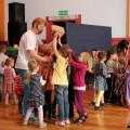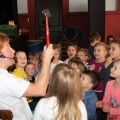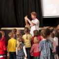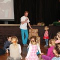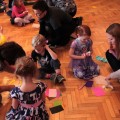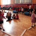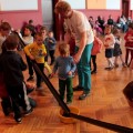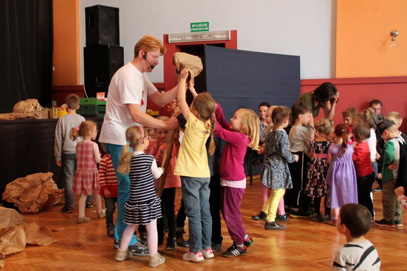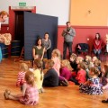 Podczas ostatniej SOBOTY W PAŁACU, dzieci wysłuchały historii o małym psie Astonie, który obchodził swoje pierwsze urodziny. Z tej okazji w jego domu pojawiło się wiele prezentów. Aston przesłał również wiele niespodzianek do Pałacu Młodzieży. Dzieci z wielką radością pomagały odpakować z papieru różne przedmioty. Były wśród nich krzesło, szczotki, młotek, deska a nawet… nocnik! Ach, ten Aston to ma fantazję! Uczestnikom naszych spotkań również jej nie brakuje! Dzieci jeździły po auli na wyimaginowanych rowerach /oczywiście nie zapomniały włożyć kasków!/, sprawdziły do czego może służyć deska, jak szybko turlają się kasztany i bardzo sprawnie pokonywały tor przeszkód. Na zakończenie zrobiły wraz z rodzicami własny latawiec, a do domu wróciły z drobnym prezentem – kreatywnym rzecz jasna! Nasze spotkania bowiem, mają pobudzać wyobraźnię i zachęcać do czytania!