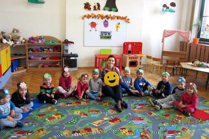 5. października dzieci z AEP uczestniczyły w Ogólnopolskim Dniu Uśmiechu. Przewodnim elementem była uśmiechnięta buzia. Przedszkolaki bawiły się przy muzyce w wesołe pociągi, pląsy oraz brały udział w konkursach. W teatrzyku przy pomocy pacynek wyrażały emocje. Ten dzień był pełen wrażeń i mamy nadzieję, że cały dzień przedszkolaki miały uśmiechnięte buzie.