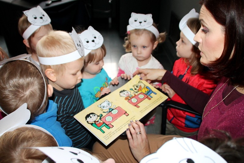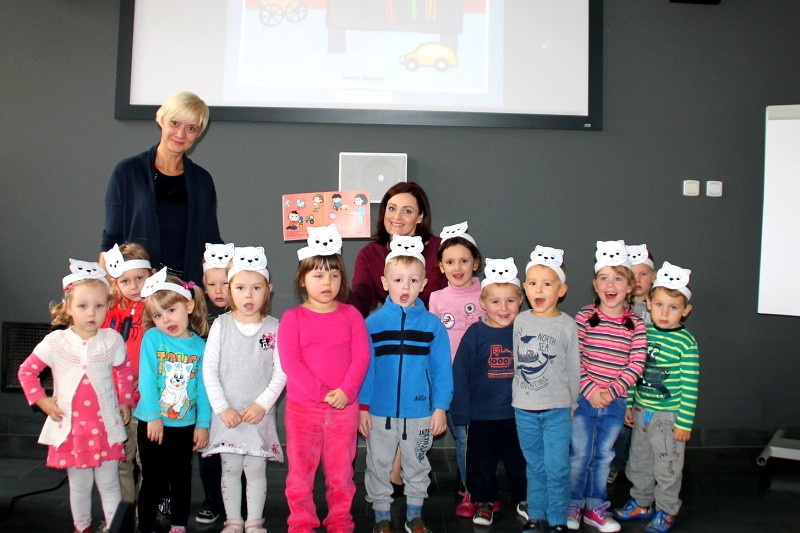 Ilustracje z książki czytanej przez nauczycielki dzieci mogły zobaczyć na dużym ekranie.