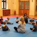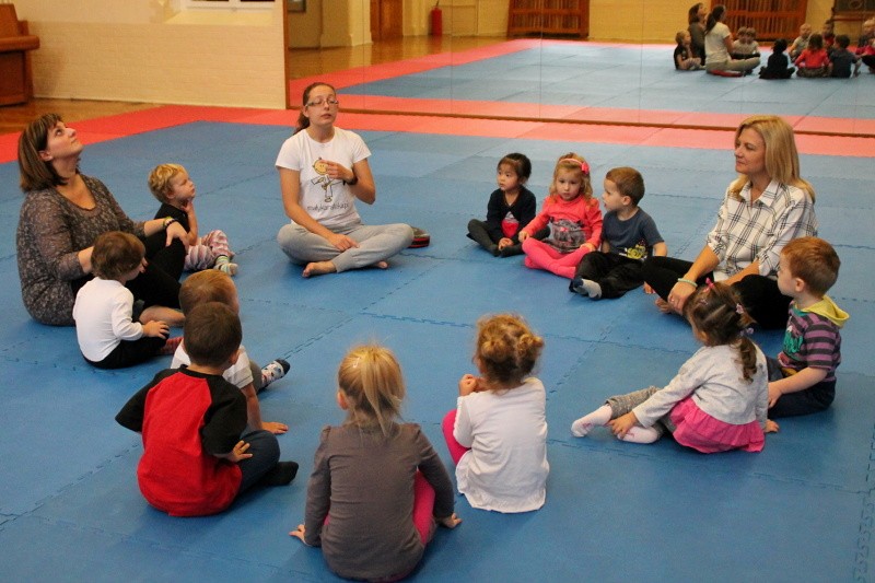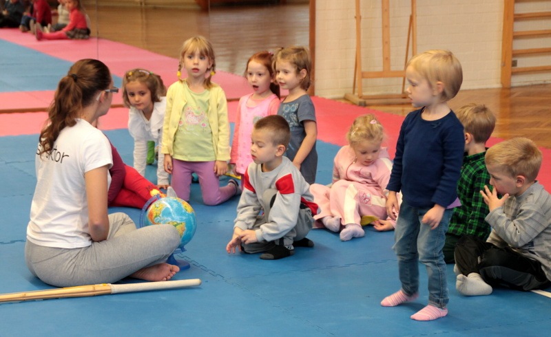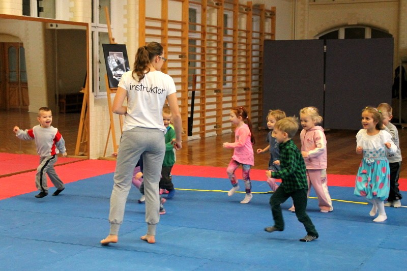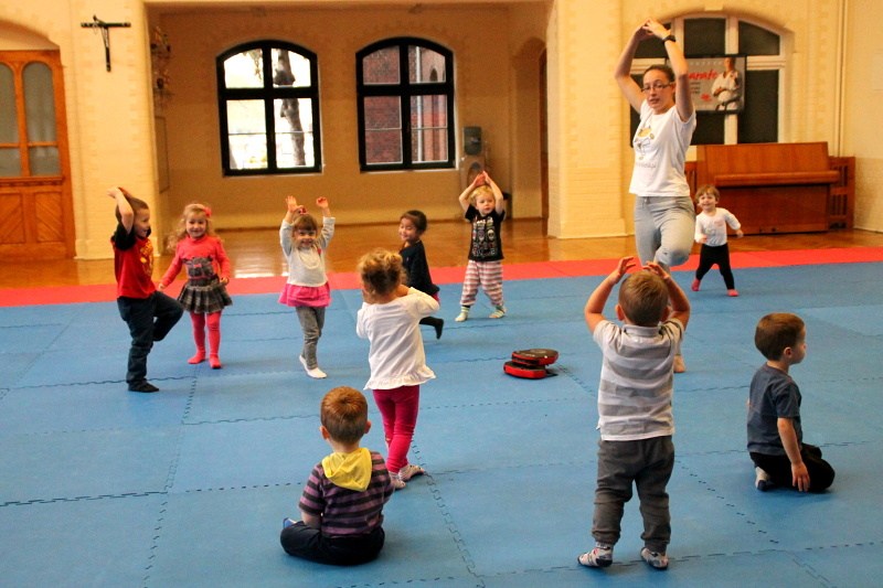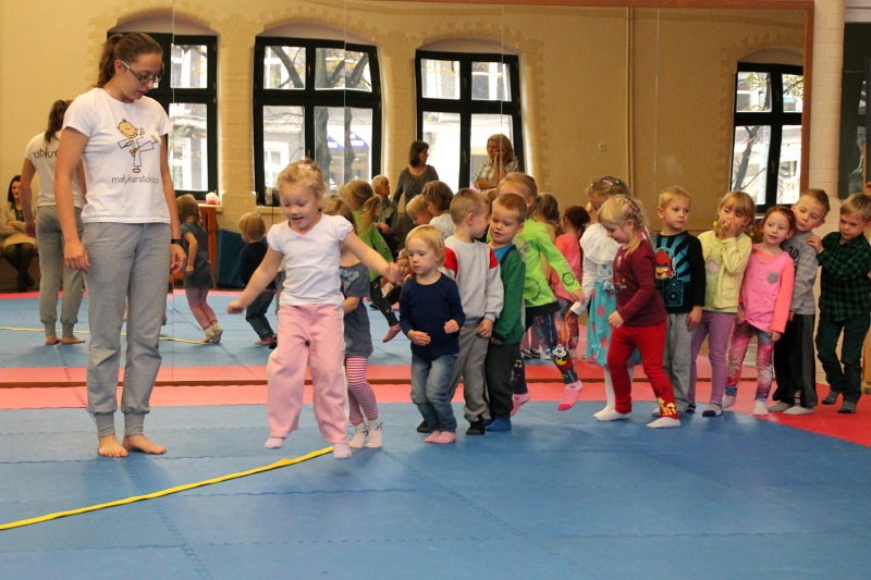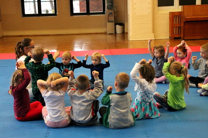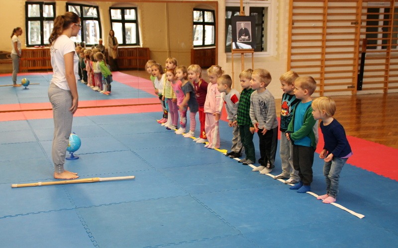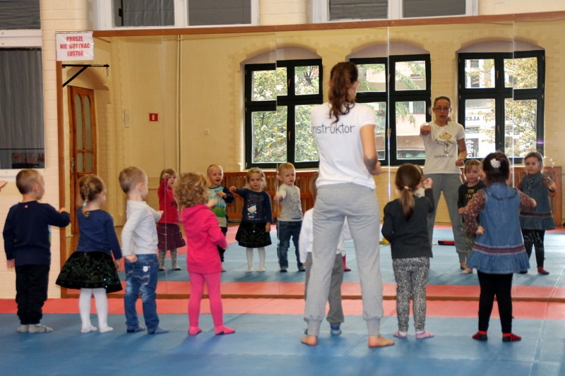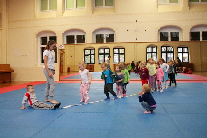 W środę, 15 października w Akademii Edukacji Przedszkolaka, odbyły się pierwsze zajęcia ruchowe z elementami karate. Projekt pod nazwą MAŁY KARATEKA, to cykliczne spotkania w trakcie których nasze przedszkolaki będą poznawały tę sztukę walki. Ćwiczenia i wiadomości są dostosowane do ich wieku. Podczas pierwszego spotkania sprawdzały na globusie, gdzie leży Japonia, dużo ćwiczyły i korzystały z przestrzeni jaką daje duuża pałacowa sala gimnastyczna!