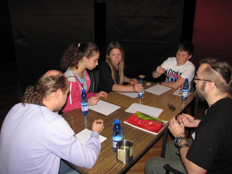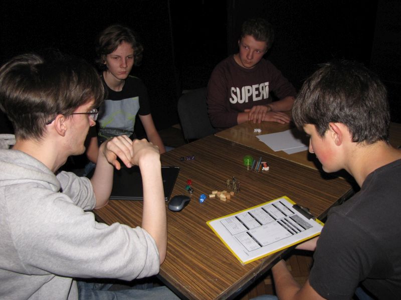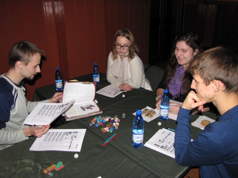 Za nami pierwsza odsłona imprezy „Kości zostały rzucone. Sobota z RPG” w Pałacu Młodzieży. Karty postaci zostały ożywione, ołówki stępione, a trofea zdobyte. W sobotę 17 października w pałacowej auli zebrało się 15 graczy, których zadaniem było rozwikłać zagadkę przygotowaną dla ich drużyny przez Mistrzów Gry. Zanim jednak wszyscy zasiedli do stołów i pochłonął ich świat gier wyobraźni, dowiedzieli się pokrótce, czym jest RPG, zapoznali się z regulaminem wydarzenia oraz wzięli udział w kilku zabawach integracyjnych. Byli z nami zarówno nowicjusze w temacie, jak i doświadczeni gracze. Nie zabrakło również duetu synowsko – ojcowskiego! Gracze mieli możliwość zawitania do kilku światów: dwóch fantasy („Dungeons and Dragons” oraz „Warhammer”), postapokaliptycznego („Neuroshima”) oraz współczesnego pełnego tajemnic („Świat Mroku: Odmieniec”, „InSpectres”). Wraz z wybiciem południa zasiedli do stołów i na trzy godziny oddali się sile wyobraźni Mistrzów Gry. Każdy odczuł na własnej skórze, jaka przyjemność płynie z grania w RPG. I już się szykował na następne spotkanie. Zapraszamy ponownie na „Kości…” 21 listopada!