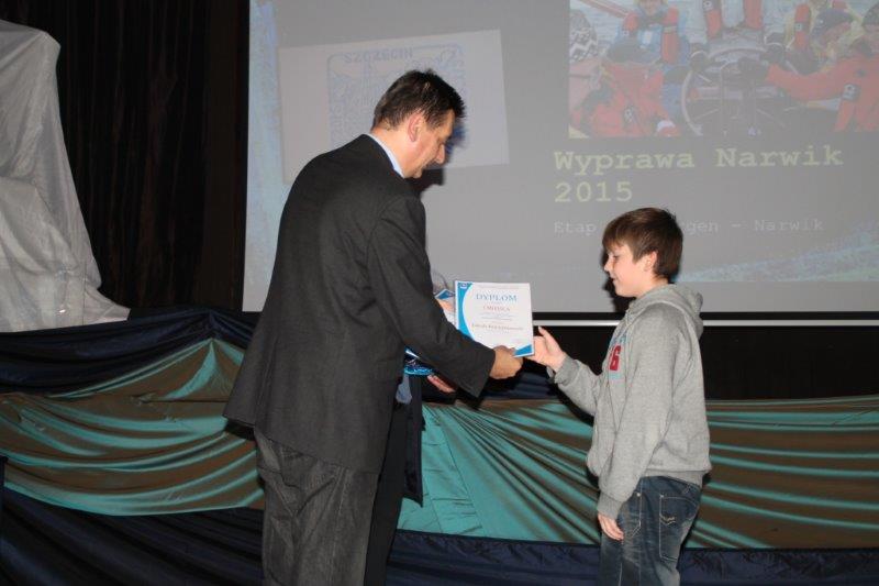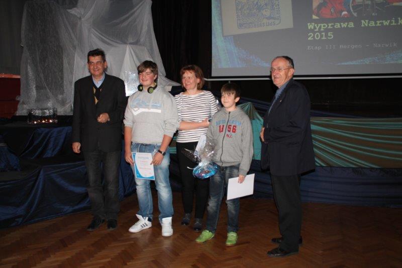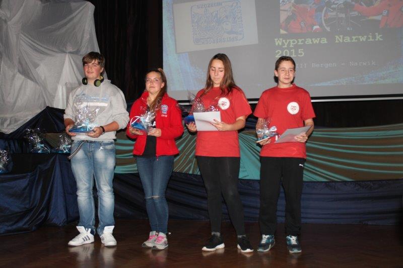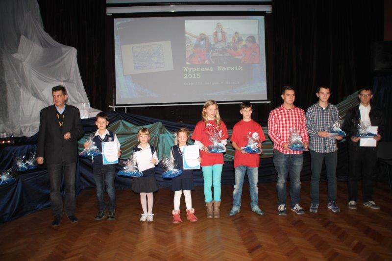 W piątek 20 listopada w auli w Pałacu Młodzieży przy pełnej sali, wysłuchaliśmy opowieści Pana Piotra Owczarskiego o wyprawie jachtem „Stary” do Narwiku i Spitsbergenu. Wyprawa upamiętniła 75 rocznicę walk polskich żołnierzy Samodzielnej Brygady Strzelców Podhalańskich. Uczestnicy rejsu oddali hołd pamięci żołnierzom i marynarzom ORP Grom. W Narwiku złożyli kwiaty na grobach polskich żołnierzy oraz pobrali ziemię, którą przekazali po rejsie do Sanktuarium na Krzeptówkach w Zakopanem. Z Narviku popłynęli do Hornsundu odwiedzając Polską Stację Polarną. Opowieści Pana Piotra były poparte pięknymi zdjęciami. O swoich wrażeniach z tej wyprawy opowiadał również uczestnik Michał Król z Zespołu Szkół Elektryczno-Elektronicznych. Następnie zostały ogłoszone wyniki konkursów fotograficznych – „Nasze Rejsy 2015” i „Żeglarskie oblicze Szczecina”. Wyniki Konkursów 2015