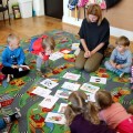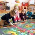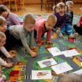 Nauka języka włoskiego w Akademii Edukacji Przedszkolaka to dla dzieci wspaniała zabawa! Potrafią już liczyć do dziesięciu, znają nazwy niektórych owoców i wiedzą, że we Włoszech prezenty dzieciom przynosi Babbo Natale. Jeśli rodzice chcą się przekonać czy maluchy opanowały znajomość włoskich słówek, podpowiadamy kilka wyrazów, które mamy nadzieję, dzieci przetłumaczą z wielką radością: gatto, cane /czyt. kane/, mucca /czyt. muka/, maiale /czyt. majale/. Na zdjęciach dzieci z grupy III z panią Andżeliką Antecką, która zabiera ich co tydzień w podróż do Włoch.