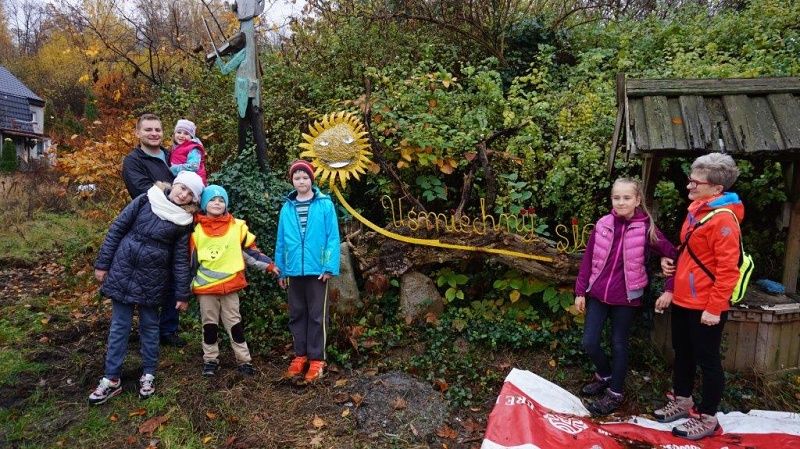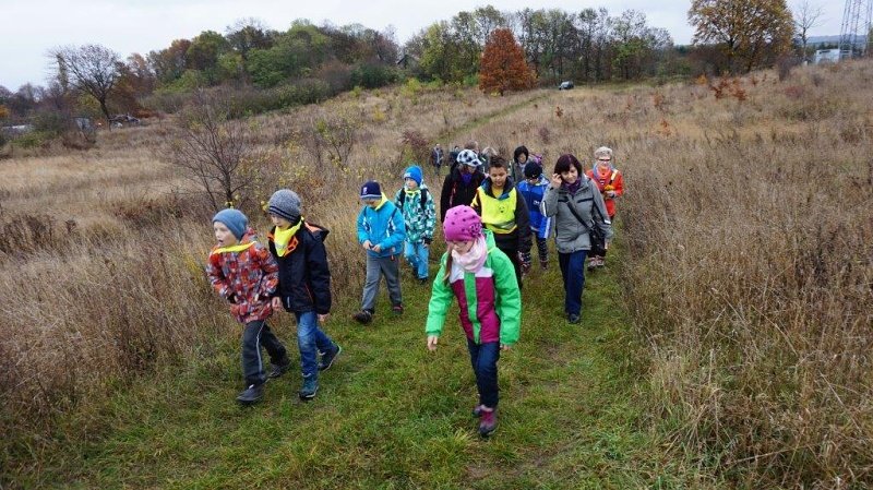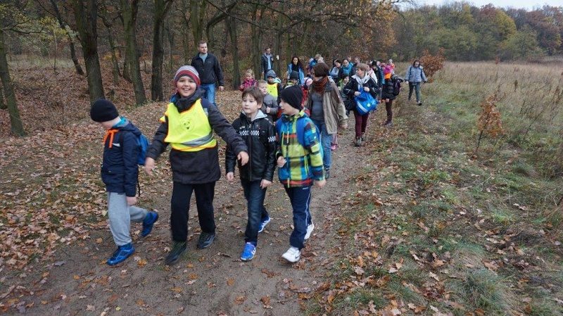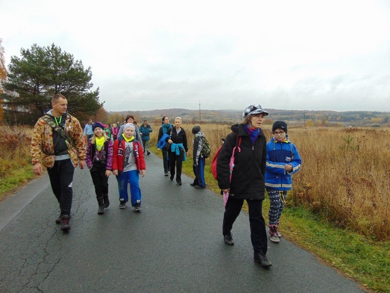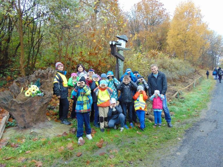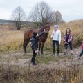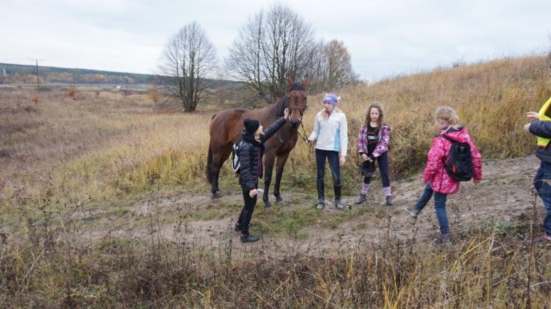 Rano 7 listopada, gdy jechaliśmy do Podjuch na 923 Leśną Sobotę, padał deszcz. Zapowiadał się „deszczowy” rajd. Słońce spisało się jednak na szóstkę! Wyszło zza chmur i przestało padać. Jesienna Puszcza Bukowa zachwycała kolorami. Na ul. Śremskiej podziwialiśmy rzeźby ustawione wzdłuż drogi. Żółty szlak doprowadził nas do Klucza, na Wzgórze Bombardierów, skąd rozciągał się widok (trochę zamglony) na Szczecin, na rozlewisko Odry, na autostradę i wiatraki po stronie niemieckiej. Kiedy podziwialiśmy krajobraz ze wzgórza, podeszły do nas dwie młode amazonki z pięknym koniem. Każdy mógł pogłaskać go i zrobić sobie zdjęcie. Do domu wracaliśmy, jak zwykle, w dobrych humorach, zadowoleni, że aktywnie spędziliśmy kolejną sobotę w dobrym towarzystwie!