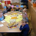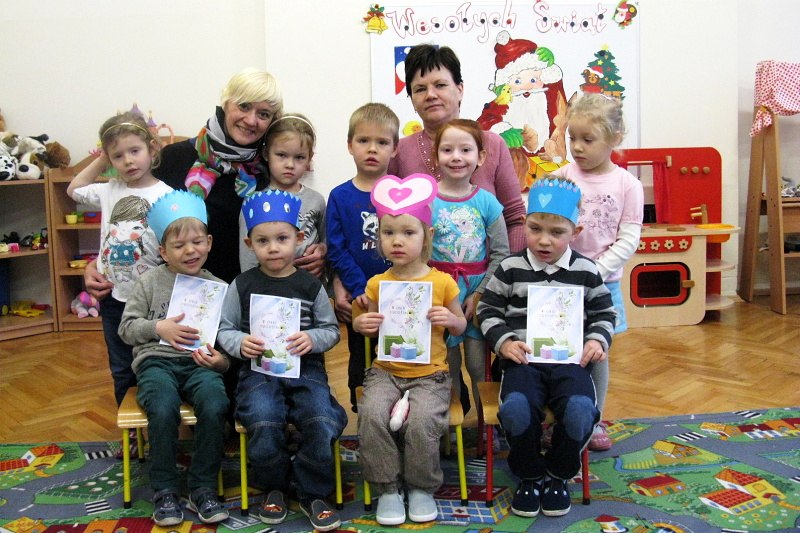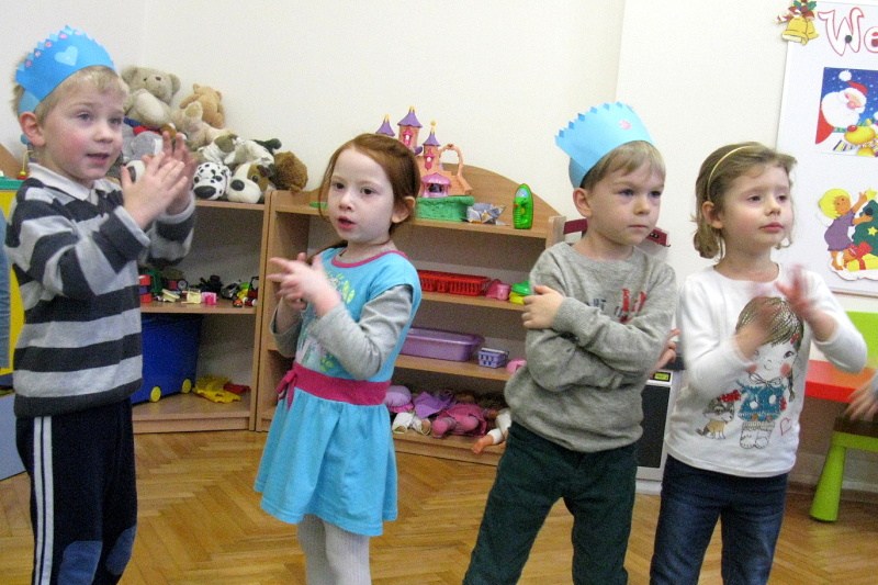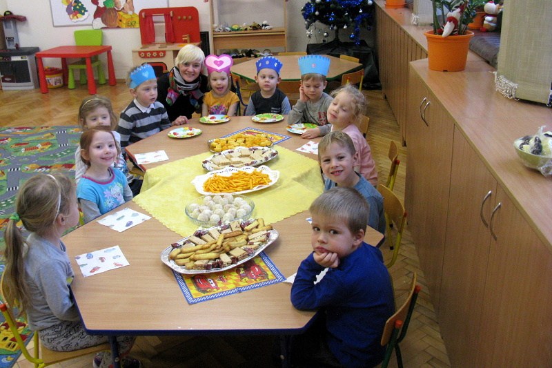 W grudniu 4. urodziny w pałacowej Akademii Edukacji Przedszkolaka obchodzili – Zosia, Ksawery, Antoś i Piotruś. Jak zwykle, jubilaci zostali uhonorowani koronami i dyplomami. Koleżanki i koledzy złożyli im życzenia i odśpiewali „Sto lat”. Następnie wszyscy wesoło bawiliśmy się przy muzyce dyskotekowej. Były też zabawy w kole i małych kółeczkach a także zabawy chustą animacyjną. Po wspaniałej zabawie usiedliśmy do słodkiego poczęstunku przygotowanego przez rodziców. Jubilatom życzymy dużo zdrowia, radości i uśmiechu.
