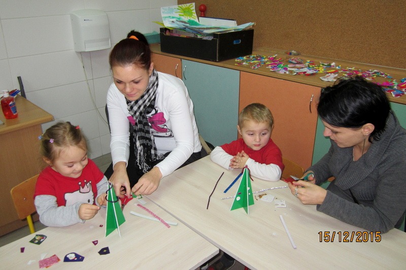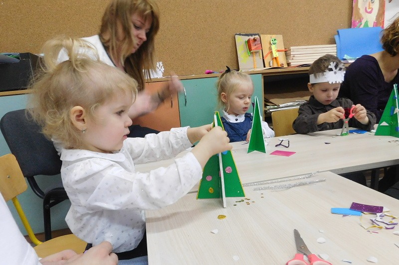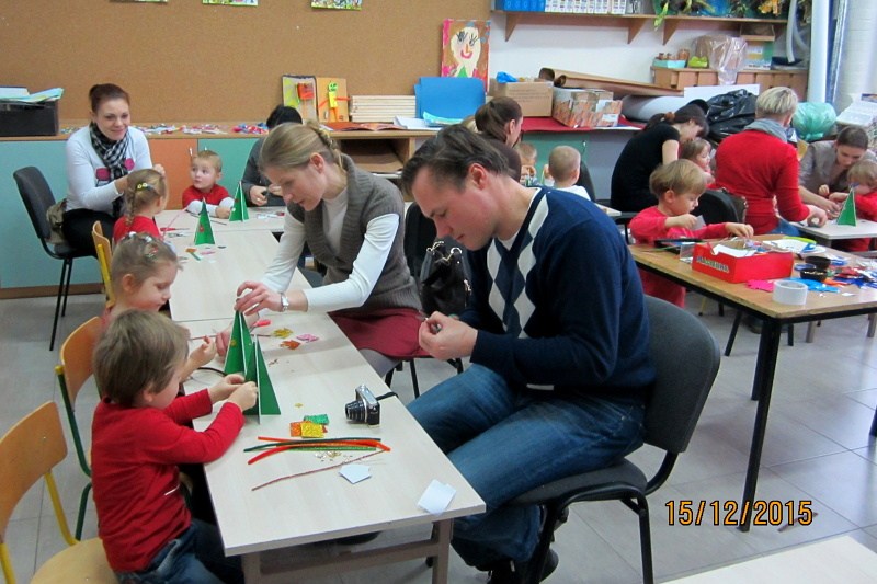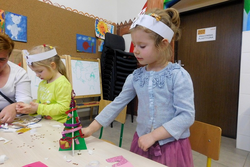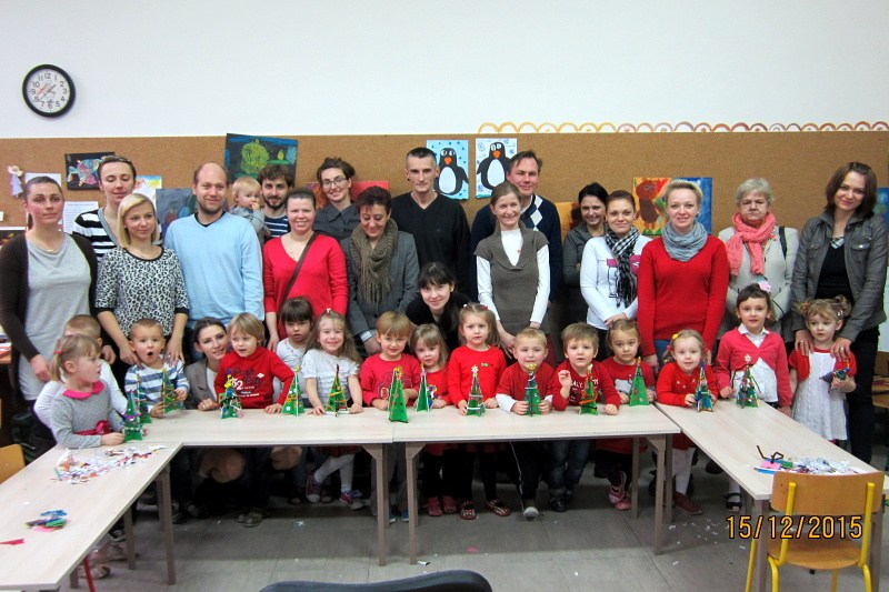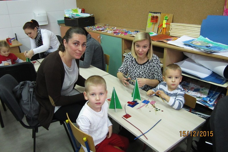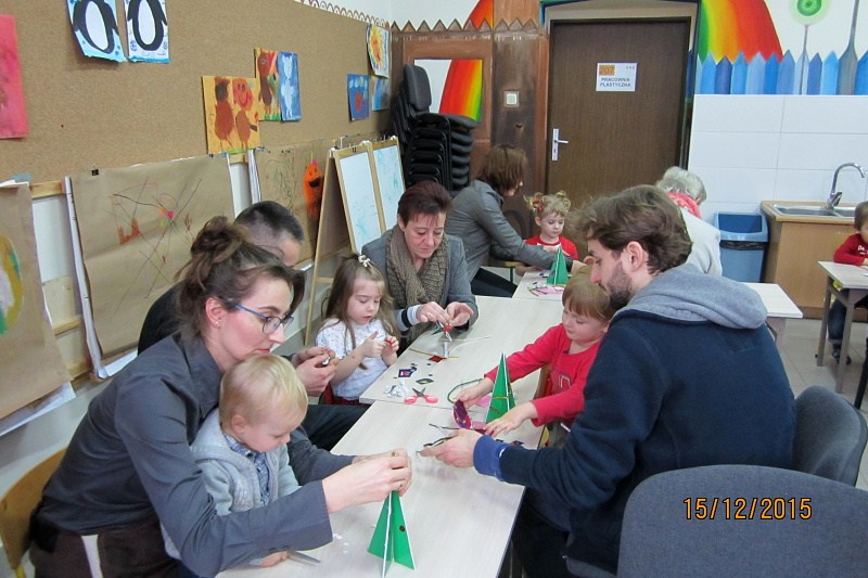 Występy przedszkolaków wprowadziły wszystkich w radosną atmosferę świąt. Następnie rodzice wraz z dziećmi udali się na warsztaty plastyczne, na których wykonały barwne choinki świąteczne. Dziękujemy rodzicom za mile spędzony czas i zaangażowanie w naszą uroczystość. Na nadchodzące święta życzymy dużo radości, miłości i rodzinnego ciepła.