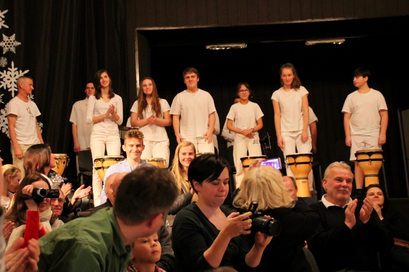 Na koniec wszyscy uczestnicy zatańczyli wspólnie fragment tańca nubijskiego. Tancerkom i tancerzom towarzyszył zespół ,,Djembe” pod kierunkiem p.Ryszarda Dziubaka. Po raz kolejny Pracownia Tańca Etnicznego za sprawą kolorowych kostiumów, dodatków, wyjątkowej muzyki i tańca zabrała nas w podróż do odległych i fascynujących miejsc na świecie. Sądząc po gromkich brawach, widowisko dostarczyło wszystkim dużej porcji dobrej energii i rozgrzało serca w ten zimowy, styczniowy wieczór.