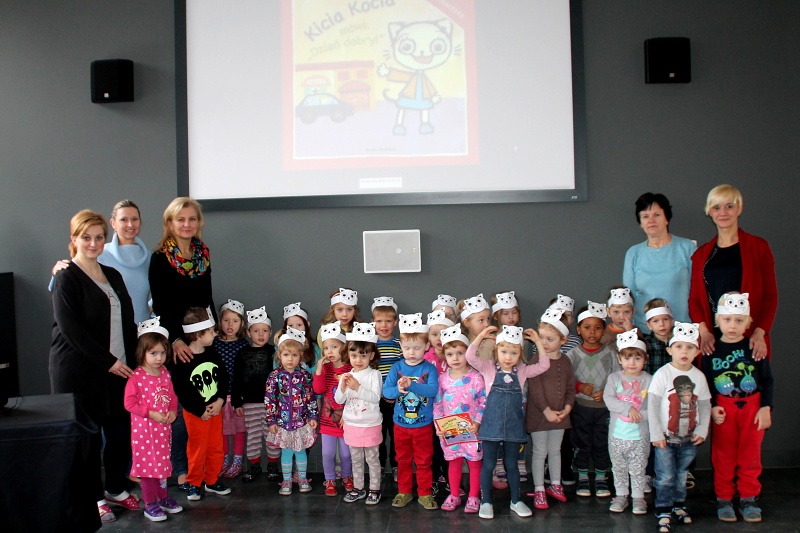 O tym, że ludzie mają dobry humor od dobrych słów i że warto uśmiechać się mówiąc „dzień dobry” dowiedziały się pałacowe przedszkolaki z kolejnej opowieści o Kici Koci. Historia przeczytana w ramach projektu WYCHOWANIE PRZEZ CZYTANIE bardzo spodobała się dzieciom. Mamy nadzieję, że będą pamiętały również o tym, czego nauczył Pacek Kicię – że „słowa wracają do nas jak piłki”.