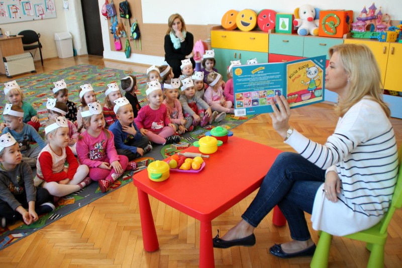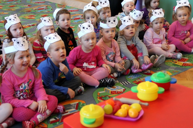 W środę, 17 lutego w Światowy Dzień Kota, pałacowe przedszkolaki poznawały kolejne przygody swojej ulubionej bohaterki – Kici Koci. Tym razem mała kotka razem ze swoją z babcią, spędzała czas w kuchni, gdzie ugotowała smaczną zupę i upiekła pyszne ciasteczka. Przy okazji Kicia Kocia a wraz z nią przedszkolaki, dowiedziała się na co trzeba zwrócić uwagę by zachować bezpieczeństwo podczas gotowania. Dzieci w trakcie lektury dzieliły się swoimi kuchennymi wspomnieniami. Można zgodnie stwierdzić, że ich pomoc jest nieoceniona, a potrawy jeszcze lepiej smakują!