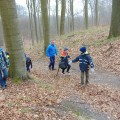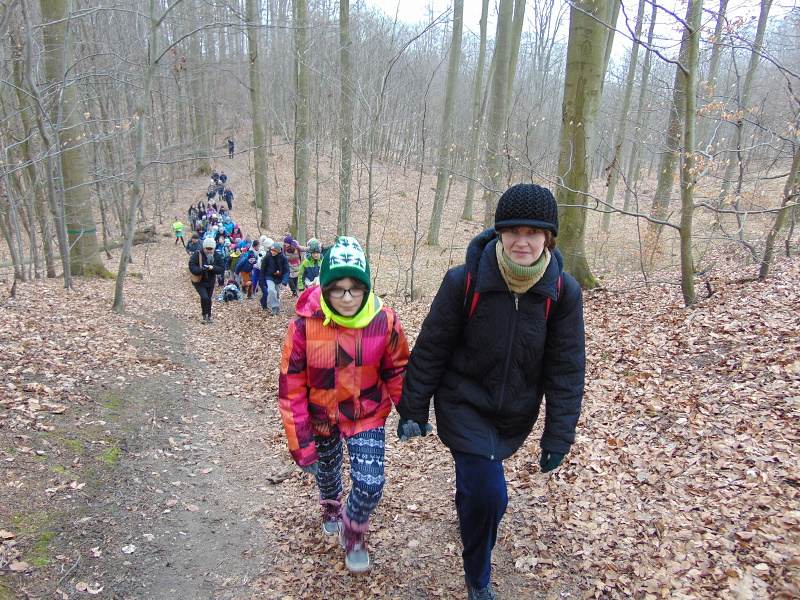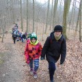 W pierwszą marcową Leśną Sobotę, ruszyliśmy czarnym szlakiem zdobywać najwyższy szczyt w Puszczy Bukowej – Bukowiec. Trasa była krótka, ale bardzo urozmaicona i wyczerpująca. Po dojściu do Siodła Zielawy rozpoczęliśmy ostatni, najbardziej stromy etap wchodzenia na Bukowiec. Trzeba przyznać, że niektórzy ciężko oddychali po przejściu tego odcinka trasy. Na szczycie podziwialiśmy wysoką wieżę, na której zainstalowano kamery do obserwacji terenu. Po krótkim odpoczynku ruszyliśmy czerwonym szlakiem do miejsca biwakowego przy źródełku pod Bukowcem. Tam była meta 931 Leśnej Soboty. Pogoda dopisała nam. Wprawdzie było pochmurno, ale nie zmarzliśmy. W czasie wędrówki zauważyliśmy oznaki wyczekiwanej wiosny: sznur powracających dzikich gęsi.