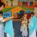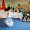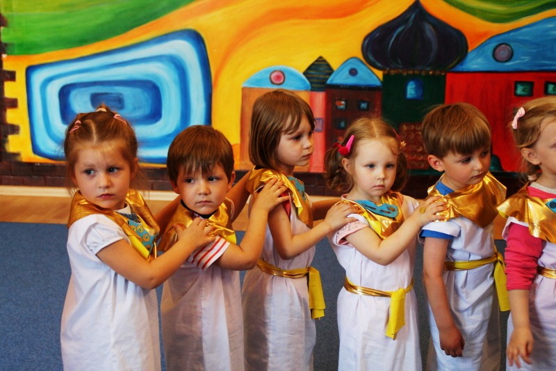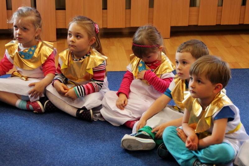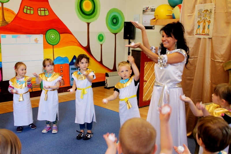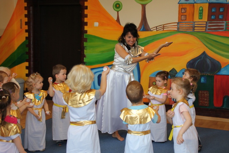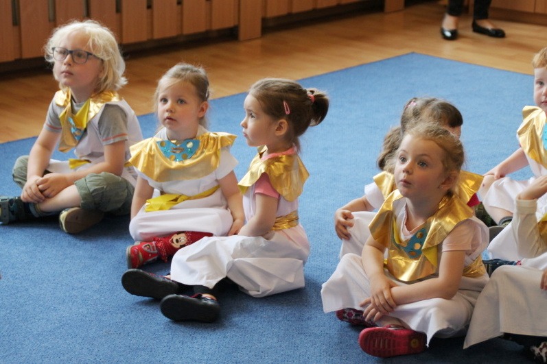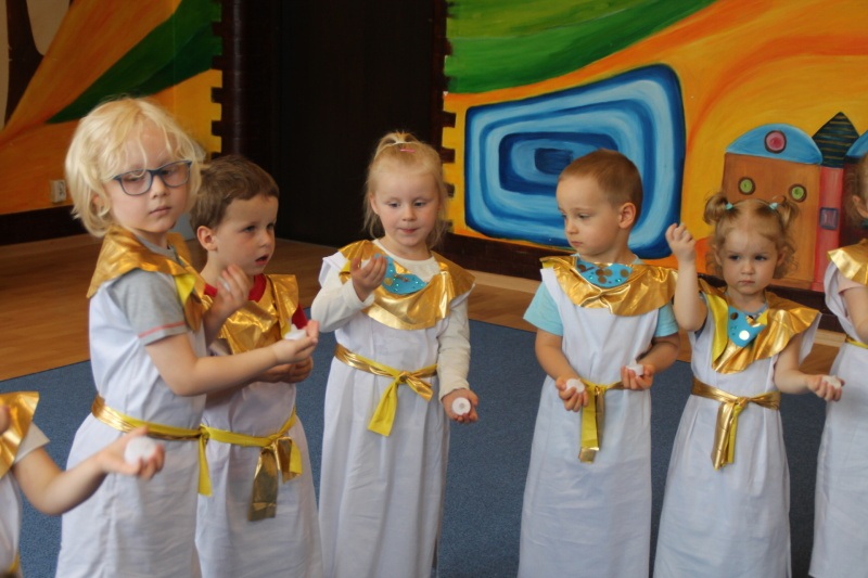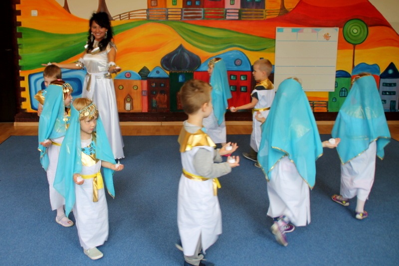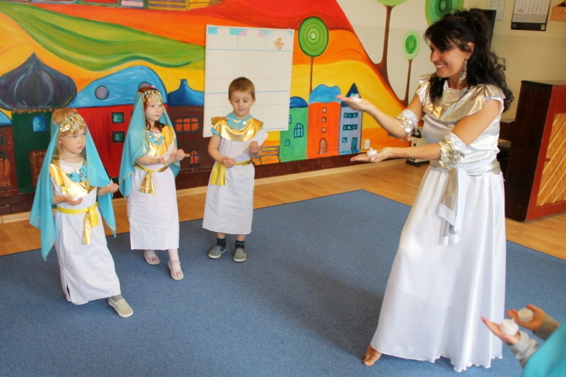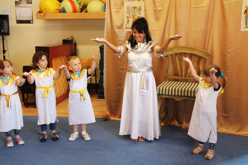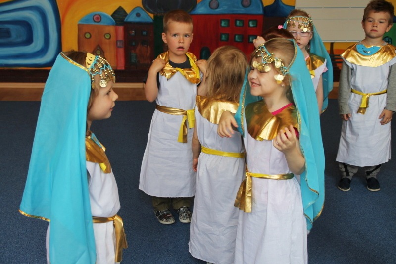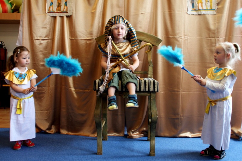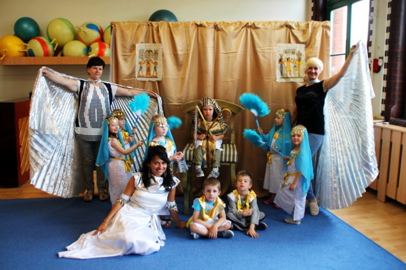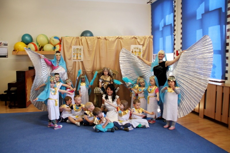 Wspaniałe stroje i rekwizyty stworzyły niesamowity klimat. Przedszkolaki tańczyły prastary taniec ku czci Faraona, a trzech chłopców miało okazję wcielić się w rolę władcy starożytnego Egiptu.