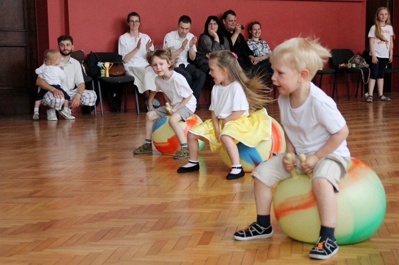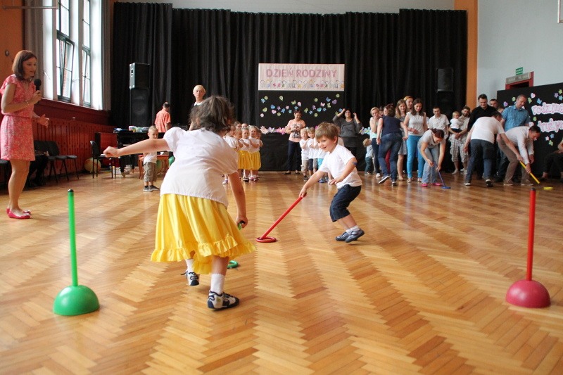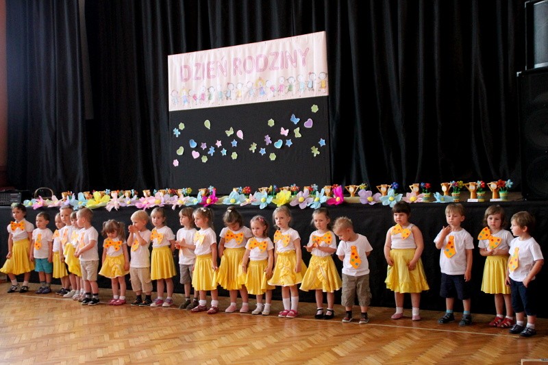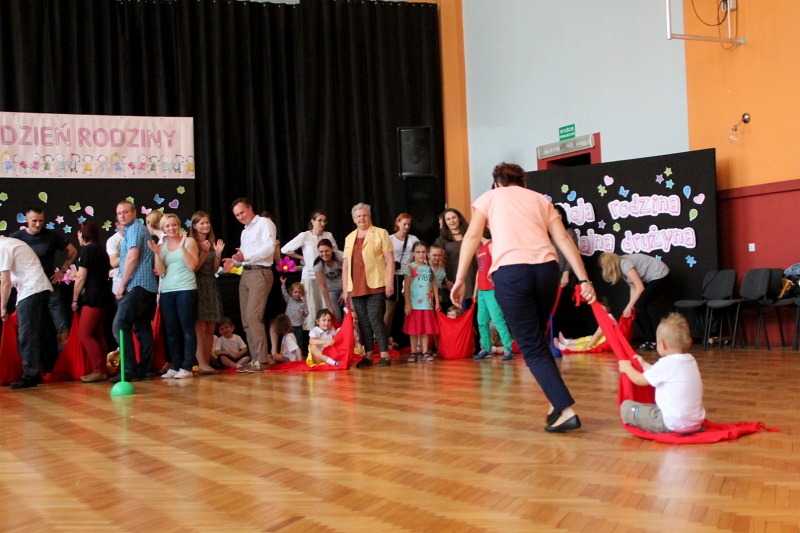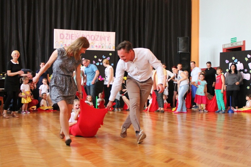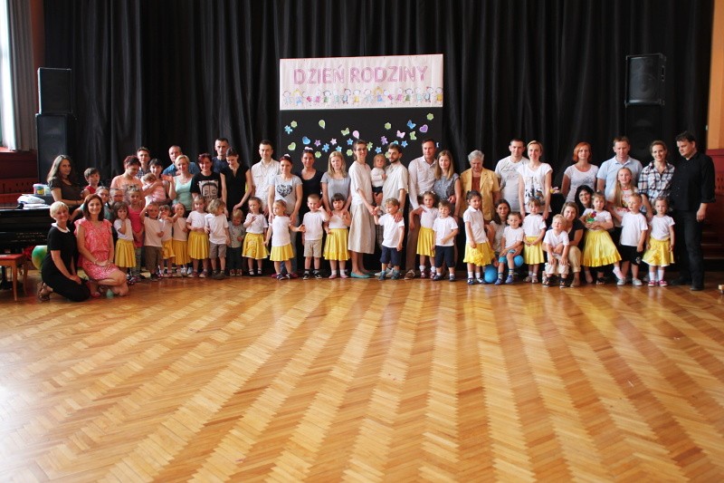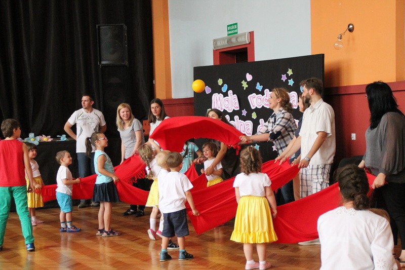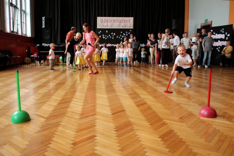 1 czerwca obchodziliśmy Dzień Mamy, Taty i Dziecka czyli Dzień Rodziny. Z tej okazji grupa Misiaczki przygotowała dla swoich rodziców występy artystyczne, w których prezentowały swe talenty recytatorskie, wokalne i taneczne, budząc zachwyt w oczach najbliższych. Dzieci własnoręcznie wykonały na zajęciach plastycznych prezenty dla mamy i taty. Po wspaniałych występach przyszedł czas na wspólne zabawy z rodzicami. Były tańce, wyścigi kocykowe oraz gra w piłkę na kocach, skoki na dużych piłkach oraz pląsy przy muzyce. Wszystkie rodziny świetnie się bawiły, bo „Dzień rodziny” to wspaniały czas zarówno dla rodziców jak i dzieci pełen wzruszeń, radości i uśmiechu, a przede wszystkim jest to czas, który mogą spędzić tylko ze sobą bez pośpiechu i z dala od codziennych zmartwień. Dziękujemy rodzicom za tak liczne przybycie i wspaniałą wspólną zabawę!