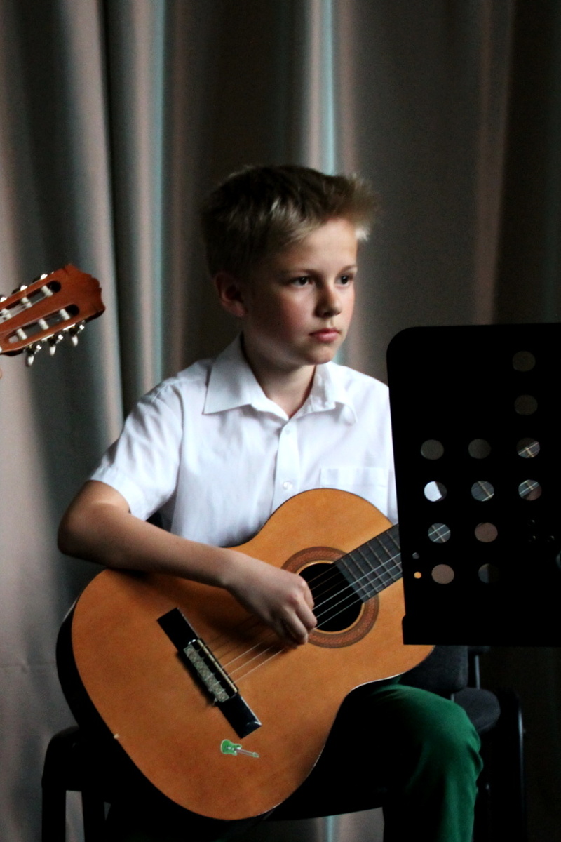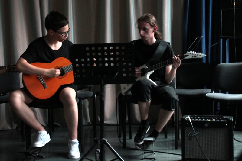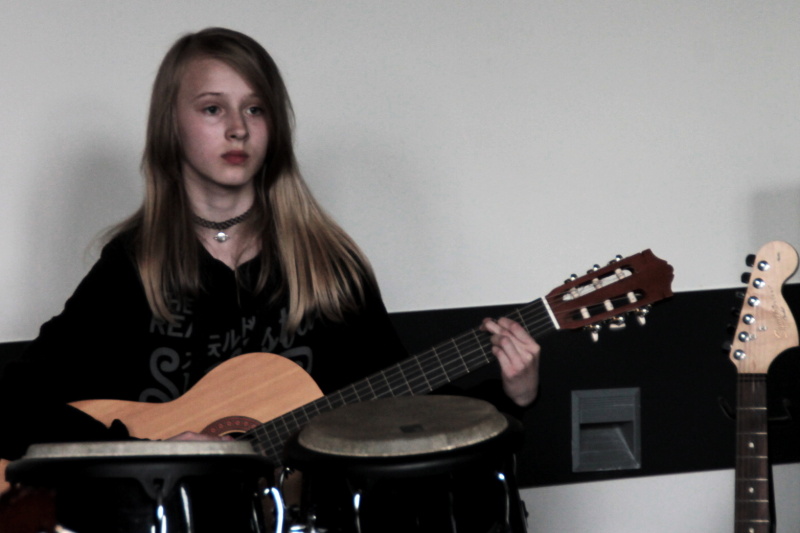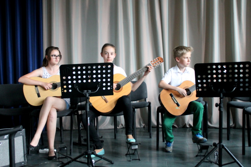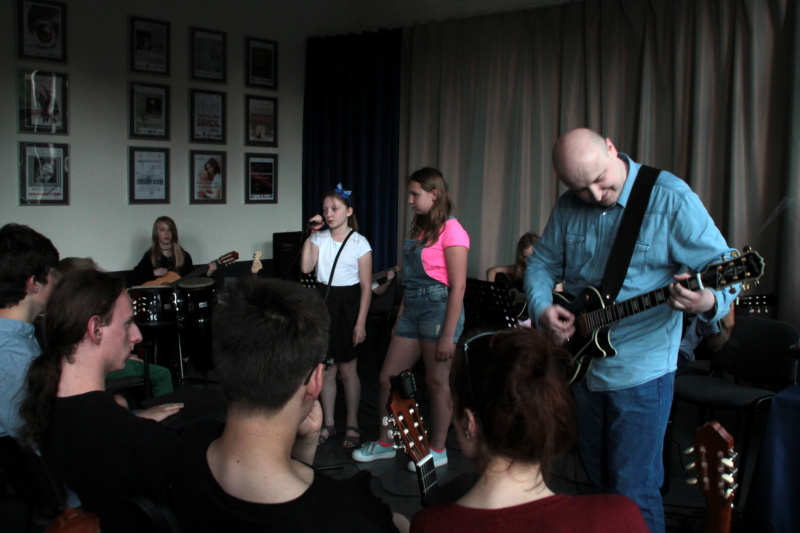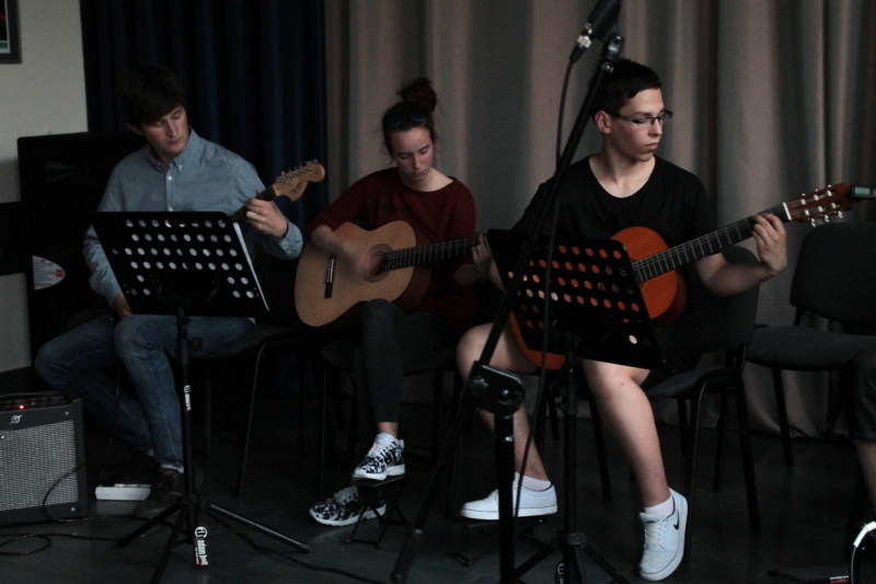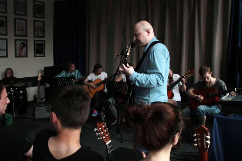 30 maja uczestnicy Pracowni Gitarowej pod opieką artystyczną p. Szymona Lipskiego, wzięli udział w koncercie podsumowującym ich całoroczną pracę. Podczas wieczoru zabrzmiały nie tylko dźwięki gitar – dwie uczestniczki, oraz opiekun grupy ubarwili koncert swoimi występami wokalnymi.