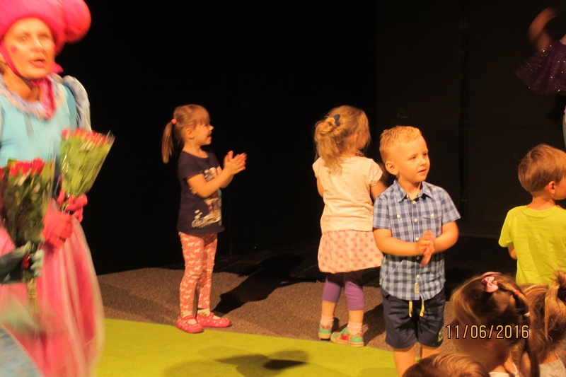 W sobotę, 11 czerwca z okazji Dnia Dziecka grupa „Misiaczki” wraz z rodzicami oraz panią Madzią i panią Marzenką odwiedziła Pleciugę i obejrzała przedstawienie pt. „Zuzu i Lulu”. Ta opowieść o dwóch lalkach, które przeżywają różne przygody, odkrywają świat rytmu, dźwięku, próbują utożsamiać poznawane dźwięki z instrumentami, które odnajdują, bardzo się dzieciom podobała. Lalki uczyły dzieci prostych i śmiesznych piosenek oraz rymowanek. Wszyscy mile spędziliśmy popołudnie w teatrze lalek, mając okazję do zobaczenia dzieci w nowej sytuacji.