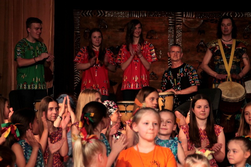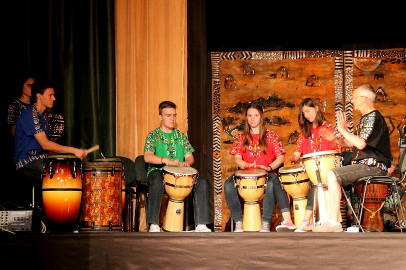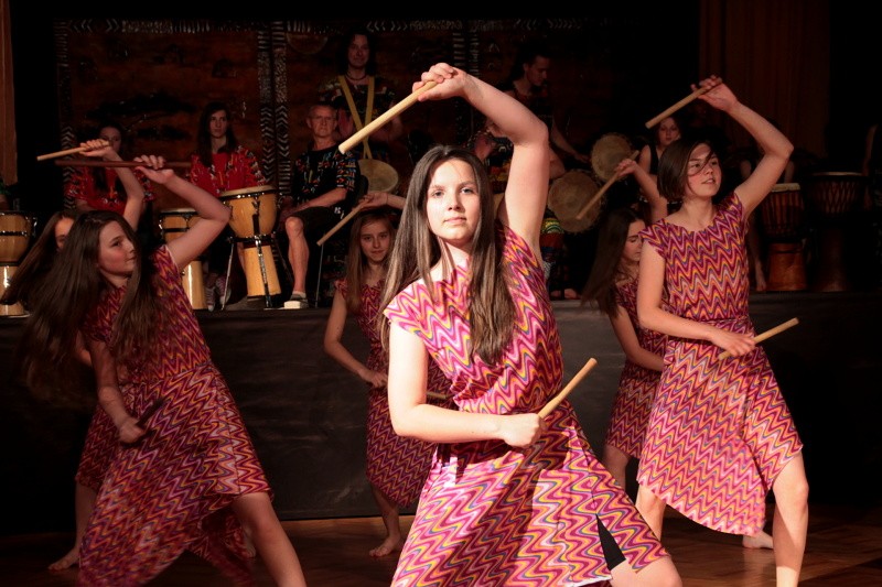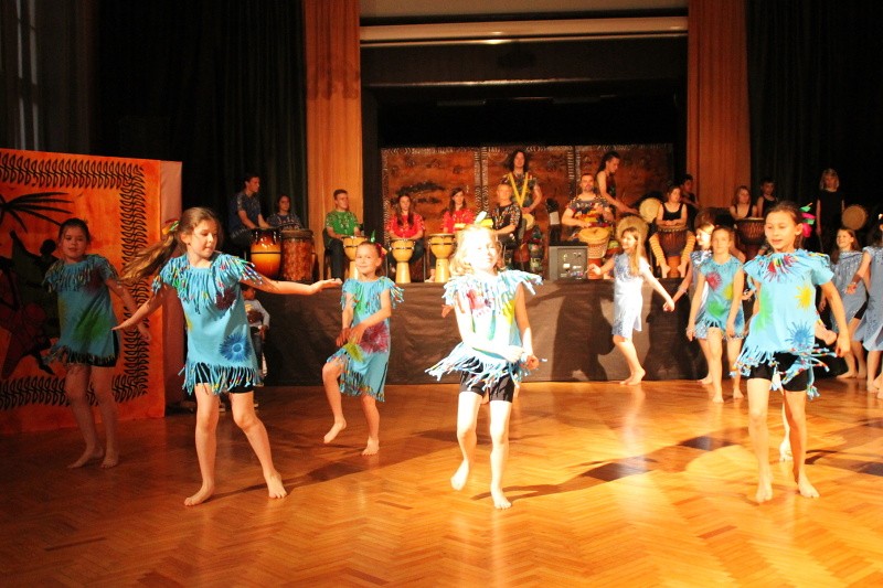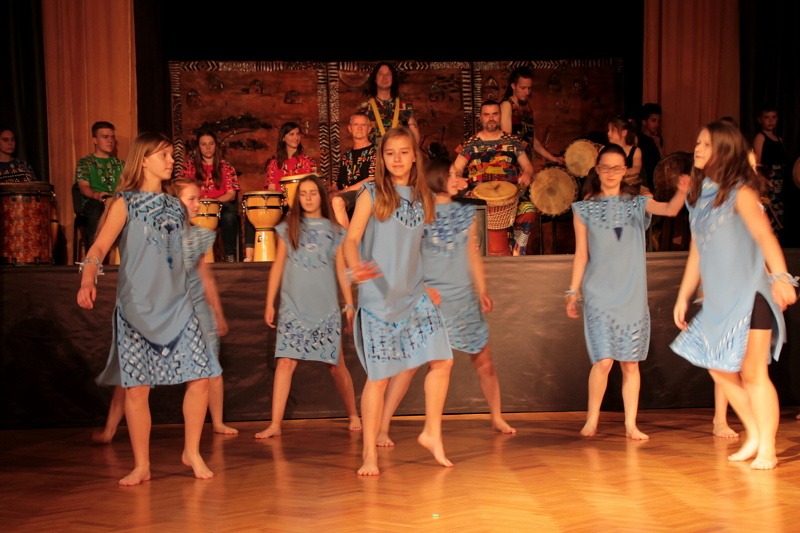 Widowiskiem ,,Nasza Afryka” podsumowała rok szkolny Pracownia Tańca Etnicznego pod kierunkiem p.Justyny Kozłowskiej i Pracownia Muzyki Etnicznej pod kierunkiem p.Ryszarda Dziubaka i p.Leszka Wiszniewskiego. Za sprawą wykonawców i scenografii mogliśmy przenieść się choć na chwilę do Afryki Zachodniej. Zobaczyliśmy oryginalne tańce afrykańskie z towarzyszeniem rdzennych rytmów i pieśni z tamtych rejonów.