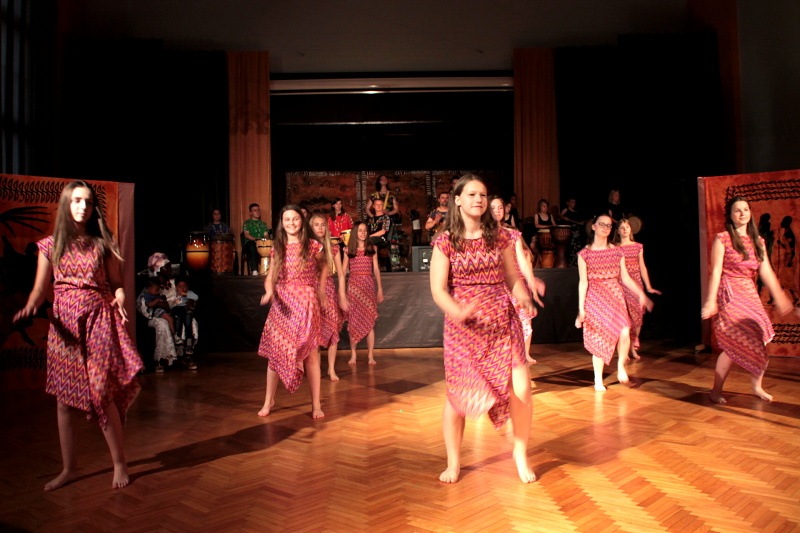 Niezwykle barwne i pełne dobrej energii widowisko po raz kolejny połączyło na scenie różne pokolenia wykonawców. Ten gorący i pełen wrażeń wieczór z pewnością pozostanie na długo w pamięci wszystkich, którzy tego dnia zawitali do Pałacu Młodzieży. Oprawę muzyczną widowiska stworzył zespół ,,Djembe” /pod opieką artystyczną p.Ryszarda Dziubaka/, najmłodsi wykonawcy z pracowni p.Leszka Wiszniewskiego i gościnnie zespół ,,Afrique Sogue” z gwinejską wokalistką M’mharry Sylla Wiszniewską. Do akompaniamentu bębnów afrykańskich na żywo zatańczyła w aranżacjach p.Justyny Kozłowskiej grupa ,,Etnika”,,Mała Etna”, „Etna” oraz Panie.