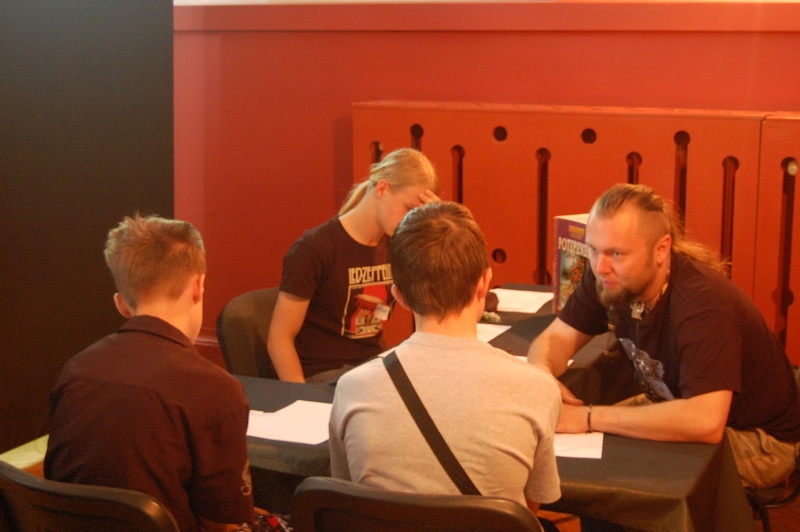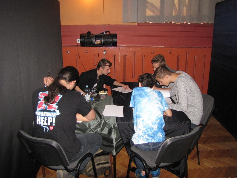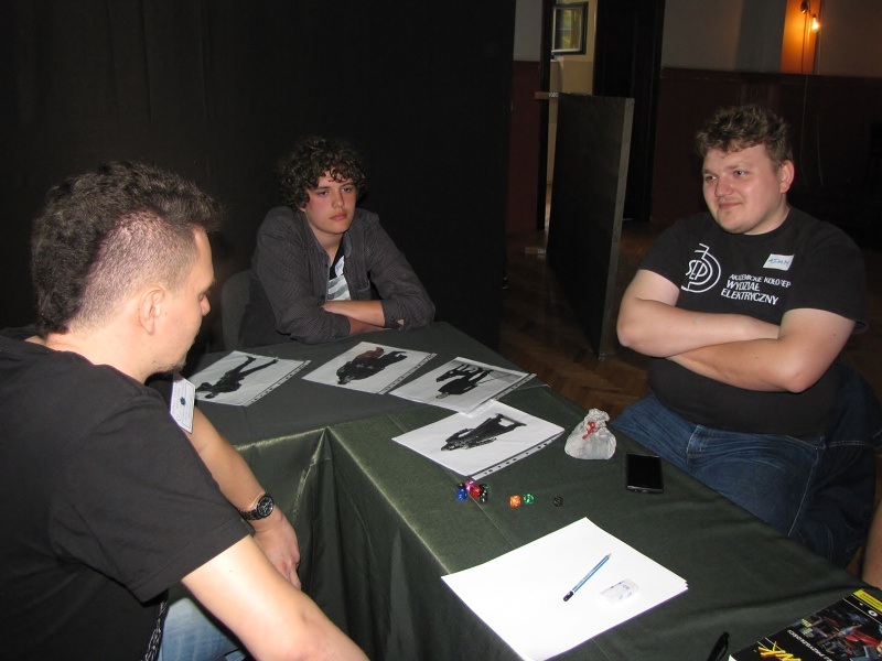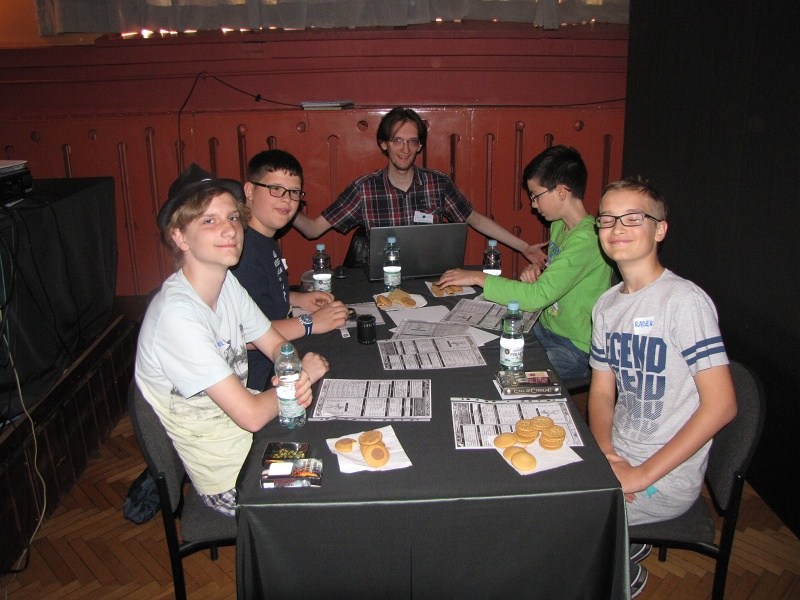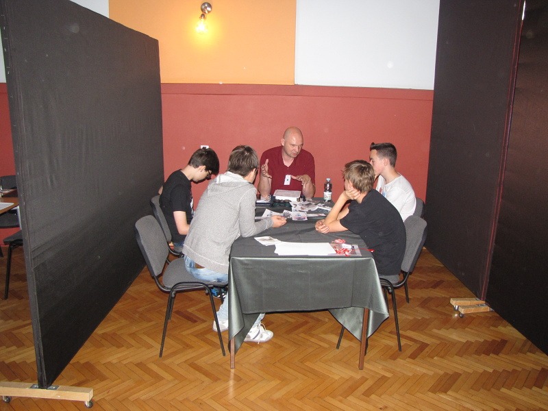 Pierwszy sezon „Kości” niestety dobiegł końca. 11 czerwca po raz ostatni w tym roku szkolnym młodzi gracze mieli okazję zasiąść do pałacowych stołów i napawać się grami fabularnymi. Licząc się z faktem zbliżających się wakacji, postanowiliśmy wyjść naprzeciw oczekiwaniom graczy i przygotowaliśmy dla nich parę porad na temat tego, jak twórczo wypełnić ten wolny czas. Najpierw jeden z naszych Mistrzów Gry, Marek, opowiedział o alternatywnych sposobach grania w tradycyjne RPG, np. przez internet, a następnie pozostali Mistrzowie przedstawili swój warsztat mistrzowski i zdradzili parę tajemnic, jak stworzyć dobrą i prostą sesję (przygodę), którą nawet początkujący Mistrz Gry mógłby poprowadzić. W międzyczasie zostały wręczone pierwsze w historii „Kości” tytuły Graczy Roku. Nobilitację tę oraz zestawy kości otrzymali Krzysztof Kowalak i Marcel Smalc. Obu chłopakom serdecznie gratulujemy! Po zdradzaniu tajemnic nadszedł czas na najważniejsze – ostatnie sesje. Po wybraniu Mistrzów Gry młodzi gracze zasiedli do przygód.