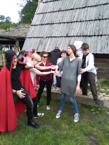 Wakacje dla Pracowni Teatralnej rozpoczęły się z tygodniowym opóźnieniem, bowiem część uczestników zajęć postanowiła spędzić pierwsze dni wolne od szkoły na Warsztatach Artystycznych w miejscowości Cieszyno, nieopodal Drawska Pomorskiego. W czasie, gdy reszta ich rówieśników oddawała się odpoczynkowi, dziewięcioosobowa grupa młodzieży dzielnie „walczyła” z „Juweniliami” Witkacego, tekstem wydawałoby się prostym, aczkolwiek będącym sporym wyzwaniem dla młodego aktora. Oprócz warsztatów teatralnych był również czas na relaks czy to na plaży, czy to nad planszą do gry. Wieczory zaś spędzali na projekcjach filmów, będącymi adaptacjami współczesnej dramaturgii polskiej, jak i światowej. Nie obyło się też bez wycieczek – jednej do zamku w Drahimiu, gdzie można było poczuć klimat średniowiecza oraz do Złocieńca, większej miejscowości znajdującej się nieopodal, a do której jedna z dróg prowadzi przez malowniczy las. Całość Warsztatów uświetnił koncert taneczno – muzyczny, a nasi teatromaniacy zabrali do domu wspaniałe wspomnienia i pragnienie jak najrychlejszego powrotu do Cieszyna.