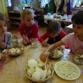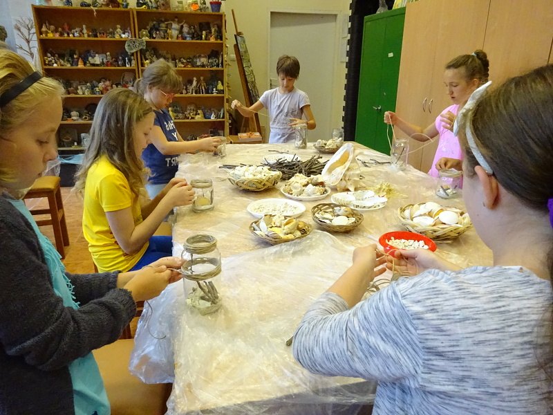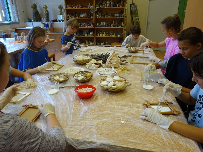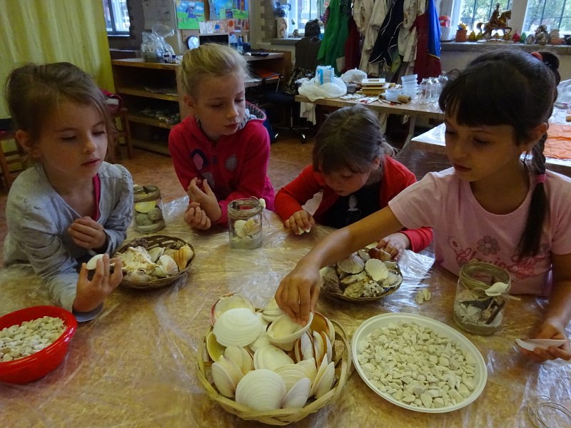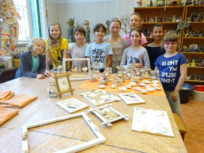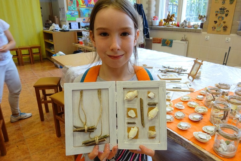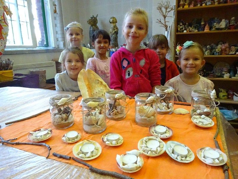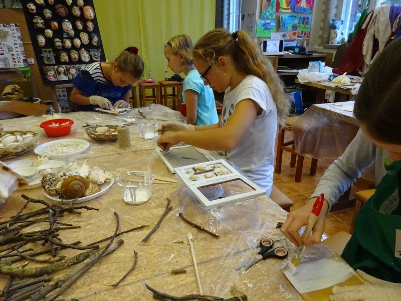 Pracownia Tańca Etnicznego pod kierunkiem p.Justyny Kozłowskiej podczas pierwszych w tym roku szkolnym Etnicznych Warsztatów Twórczych jak zawsze tworzyła i przenosiła się w wyobraźni do innych miejsc na świecie. Dziewczęta wspominały wakacje, podróże, a przede wszystkim wspólny warsztatowy wyjazd do Cieszyna i występ pod palmami w Połczynie Zdroju. Na stole pojawiły się różne okazy muszli, rozgwiazdy, a także suche gałązki roślin, kamyki i piasek. To właśnie z tych elementów tancerki wykonały przepiękne ozdoby i dekoracje. Wystawę prac zobaczymy podczas planowanego na styczeń taneczno -muzycznego widowiska.