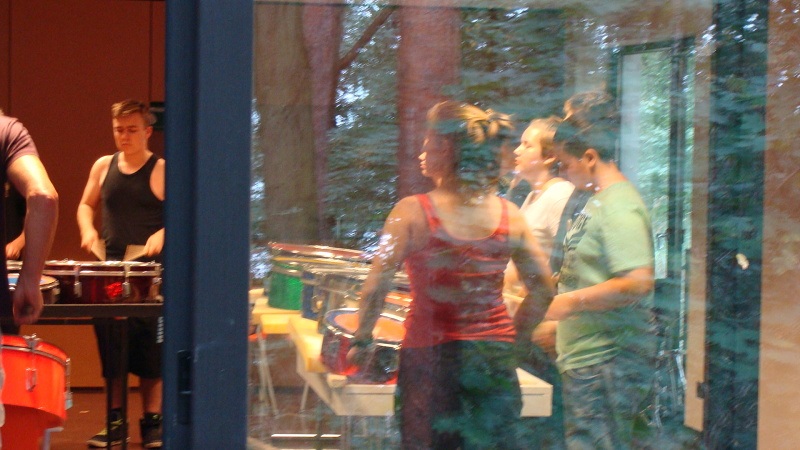 Następnego dnia ćwiczyliśmy jeszcze więcej i bardziej intensywnie (łącznie około 7,5 h). Mimo ogromnej liczby decybeli i wielu godzin stania nie byliśmy zmęczeni, ponieważ w czasie przerw mogliśmy cieszyć się towarzystwem przyjaznych instruktorów i zagranicznej młodzieży uczestniczącej razem z nami w warsztatach. Przygotowaliśmy ogólny zarys naszego występu, który w dużej mierze polegał na improwizacji. Wieczorem nastąpiły prezentacje uczestników wszystkich pracowni, którzy mogli pokazać międzynarodowej młodzieży, czego nauczyli się przez te dwa dni. Całość poprzedził bardzo dobrze przyjęty występ zespołu DJEMBE i grupy średnio-zaawansowanej pod kierownictwem pana Ryszarda Dziubaka. Nasz drugi pokaz, tym razem wraz z koleżankami i nauczycielami z zagranicy,również wypadł bardzo dobrze. Po prezentacji uczestników odbył się krótki i niesamowicie efektowny pokaz tańca z ogniem. Ostatniej nocy była również dyskoteka, na której puszczano zarówno znane wszystkim przeboje, jak i te pochodzące z krajów poszczególnych uczestników. Dzięki tej formule mogliśmy jeszcze lepiej poznać kulturę naszych zagranicznych koleżanek i kolegów. Zadowoleni i wyczerpani emocjami dnia wróciliśmy do naszego hotelu.