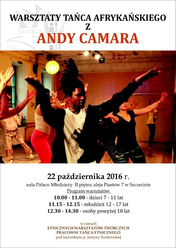 Miło nam poinformować, że w sobotę 22 pażdziernika będziemy gościć w Pałacu Młodzieży gwinejskiego tancerza i choreografa p. Andy Facinet Camara. W warsztatach tańca afrykańskiego prowadzonych przez naszego gościa wezmą udział uczestnicy pałacowej Pracowni Tańca Etnicznego prowadzonej przez p.Justynę Kozłowską. Warsztaty są częścią cyklu wydarzeń w ramach FESTIWALU KULTURY AFRYKAŃSKIEJ – Africa Trip (21-23.10.2016), którego pomysłodawcą i organizatorem jest p.Paweł Sasim.