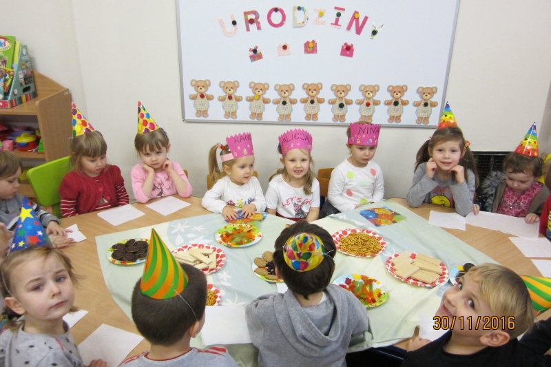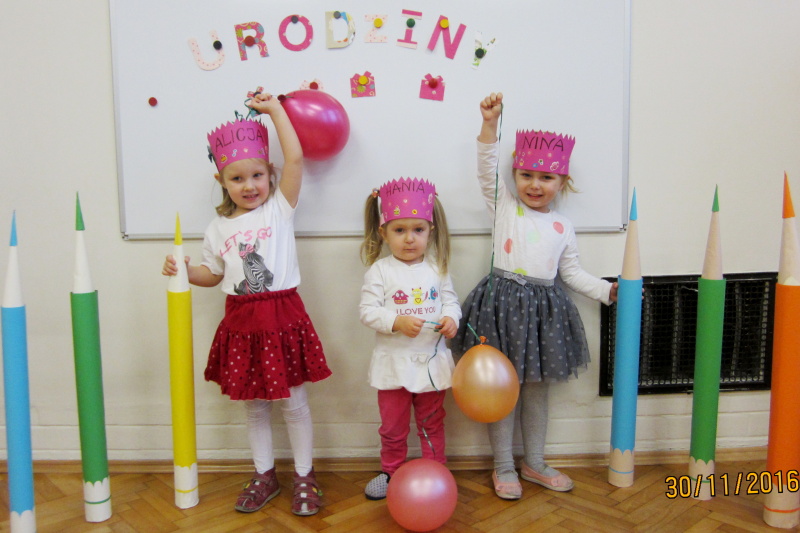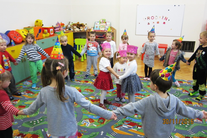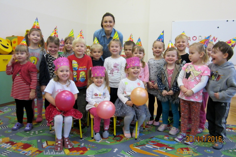 W listopadzie, w Akademii Edukacji Przedszkolaka urodziny obchodzili w gr. I – Wiktoria i Wojtuś, w grupie II – Monika a w grupie III – Nina, Hania i Ala. Jubilaci otrzymali pamiątkowe korony, dyplomy i balony. Panie wraz z dziećmi odśpiewały im „100 lat” oraz złożyły najserdeczniejsze życzenia. Jak zawsze nie zabrakło tańców i zabaw ruchowych. Rodzice zadbali o słodycze i napoje. Dziękujemy!