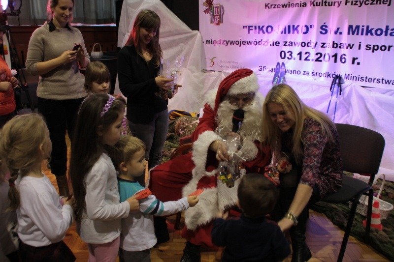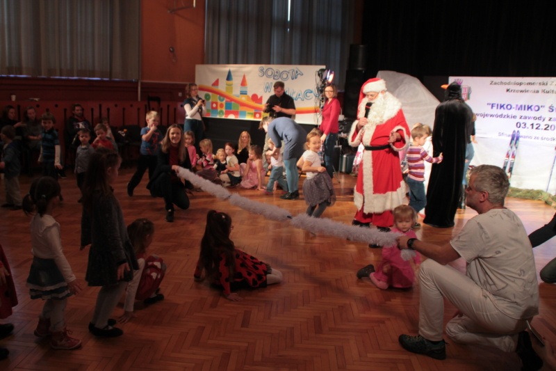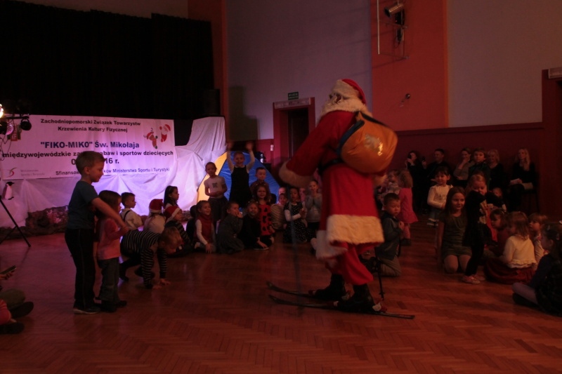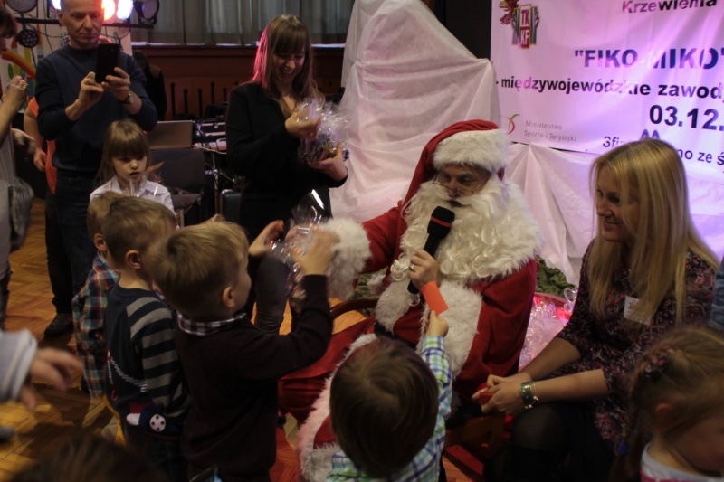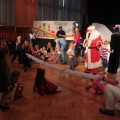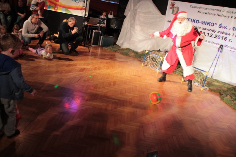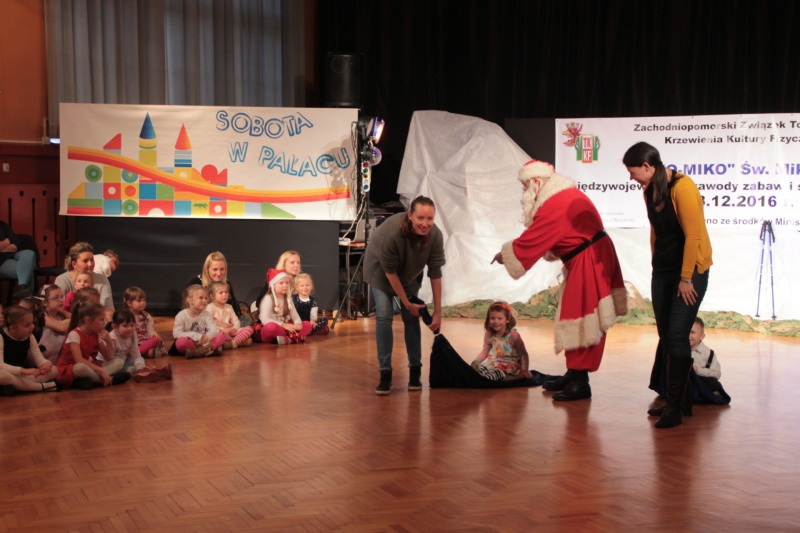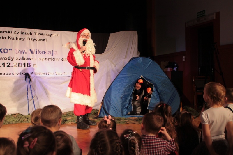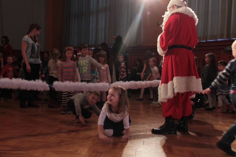 Jak co roku o tej porze, do Pałacu Młodzieży zawitał Święty Mikołaj. Tego dnia pałacowa aula zmieniła się w lodową krainę, w której mieszkają pingwiny. Gdy Mikołaj się w niej pojawił pomógł małemu pingwinkowi pozbyć się złego nawyku jakim było niemówienie prawdy, a potem zaprosił wszystkie dzieci do zabawy. Była muzyka i taniec a także wiele konkurencji, w których można było sprawdzić swoją szybkość i zręczność. Rzucanie rybą, wyścigi zaprzęgów, zawody misiów i pingwinków – wszystkie te zabawy wywołały mnóstwo emocji. Nie łatwo przecież strzelić gola, gdy na bramce stoi sam Święty Mikołaj! A przeniesienie bombki na łyżeczce to też nie lada wyczyn! Trzeba uważać by bombka z niej nie spadła! Wszyscy uczestnicy świetnie sobie radzili i wykonywali zadania na medal! Święty Mikołaj przypomniał wszystkim o tym, jak ważne jest dbanie o bezpieczeństwo w trakcie każdej zabawy.