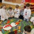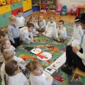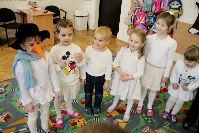 Roztapiający się śnieg uniemożliwił w trakcie czwartkowych zajęć z języka angielskiego ulepienie prawdziwego bałwana. Ale dzieci z pałacowej Akademii Edukacji Przedszkolaka poradziły sobie i zrobiły go z… papieru. W trakcie tworzenia papierowego bałwana miały okazję poznać nowe angielskie słowa i utrwalić te, które już znają. Kolory, liczby, części ciała i ubrania – wszystkie wyrazy, oczywiście w języku angielskim wykorzystane zostały w trakcie zabawy. Nie zabrakło piosenek o zimie, tańca i zimowych zagadek.